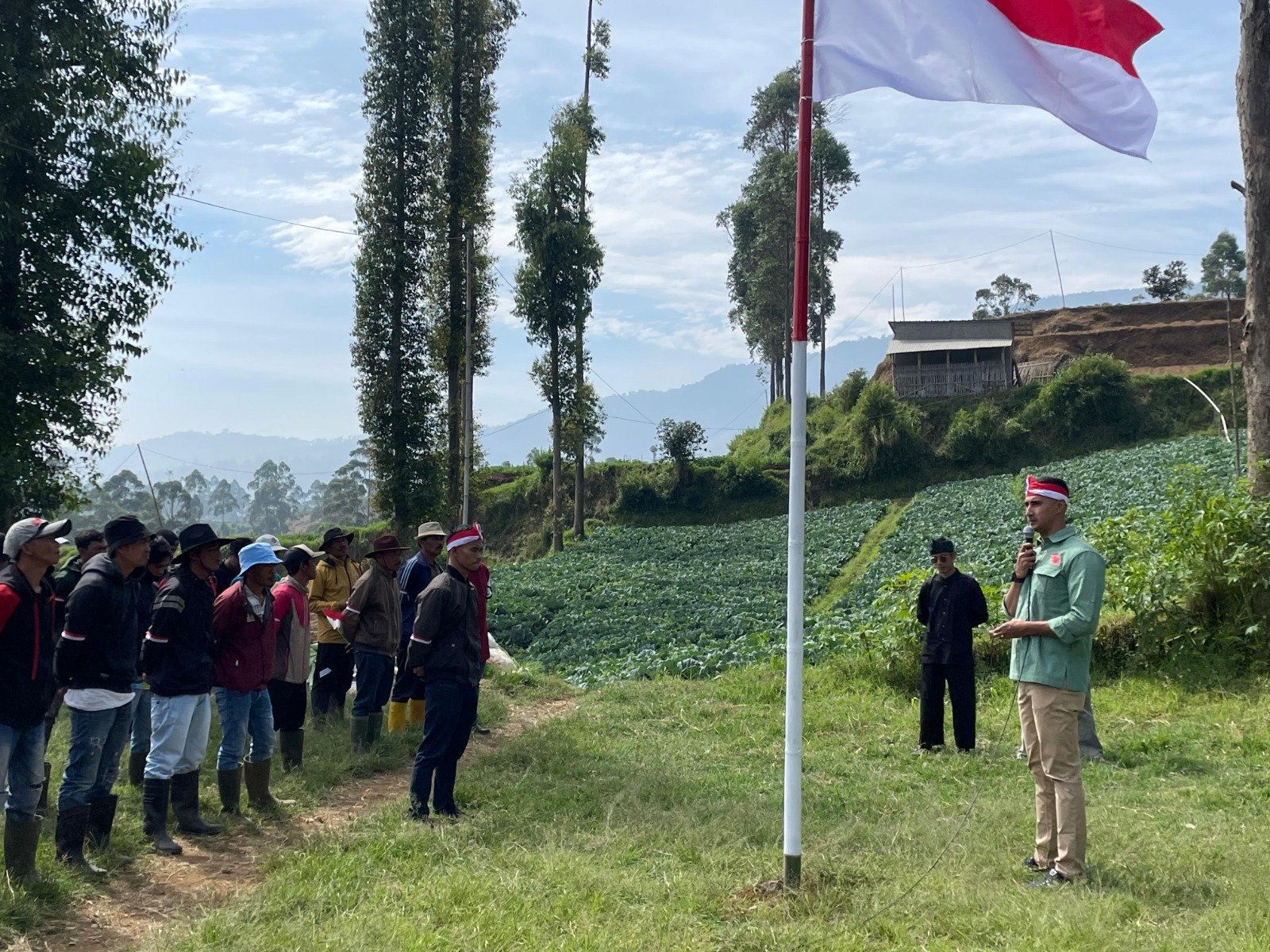 refubliknews.com, – BANDUNG. – Bakal Calon Wakil Bupati (Bacawabup) Bandung, Ali Syakieb punya cara unik dan simpatik dalam merayakan HUT ke-79 Kemerdekaan RI. Digelar sangat sederhana di salah satu kebun pinggir sawah, Kampung Goha Lebak Desa Tarumajaya Kecamatan Kertasari Kabupaten Bandung, Sabtu (17/8/2024). Ali didaulat puluhan petani sebagai pemimpin upacara.