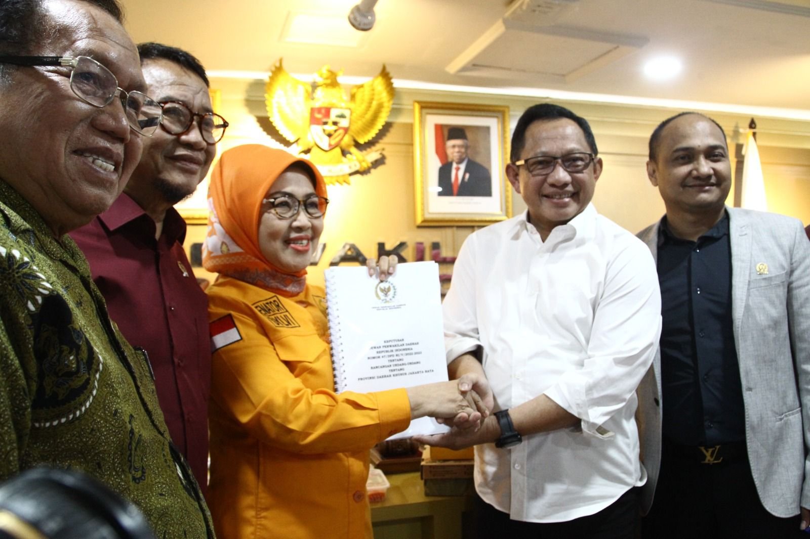 Dalam rangkaian rapat kerja tersebut, Sylvi mewakili Komite I DPD RI menyerahkan Rancangan Undang-Undang Daerah Provinsi Jakarta yang telah disusun oleh Komite I DPD RI kepada Mendagri Tito Karnavian.