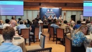 Bali, Selasa 27 Februari 2024 (Bakamla RI/Indonesian Coast Guard) — Deputi Kebijakan dan Strategi Bakamla RI Laksda Bakamla Dr. Gregorius Agung W.D., M.Tr. (Han)., didampingi oleh Analis Kebijakan Ahli Madya Bakamla RI Kolonel Bakamla Tuti Ida Halida, S.T., M.I.T.M., menghadiri kegiatan Maritime Security Symposium di salah satu Hotel kawasan Bali, pada Selasa (27/2/2024).