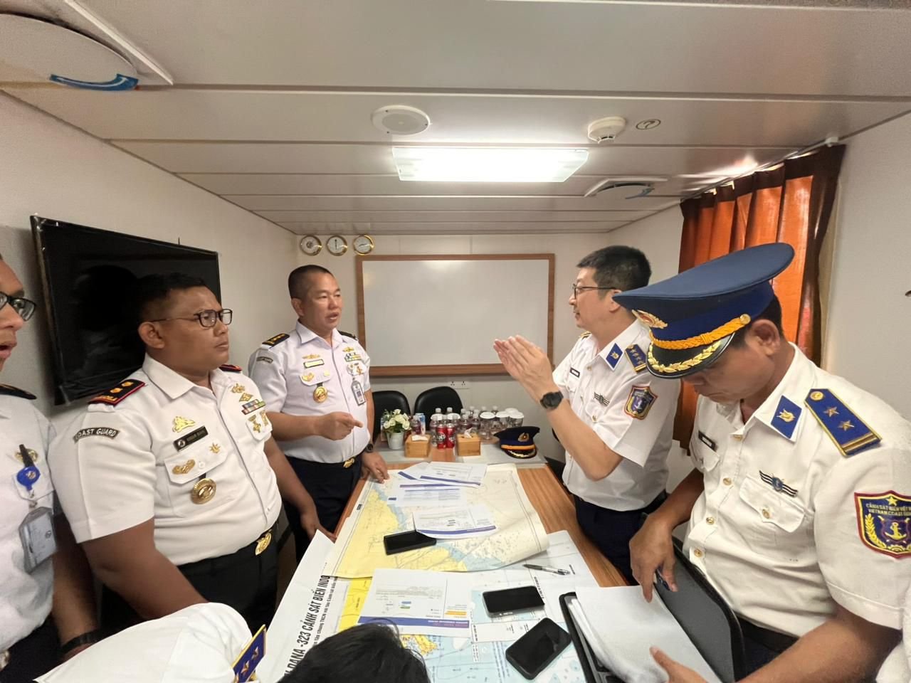 Dalam kegiatan ini, hadir Deputy Commander VCG Region 3, Colonel Nguyen Min Khanh, yang memberikan masukan mengenai teknis pelaksanaan latihan SAR. Kehadirannya mempertegas komitmen kedua belah pihak untuk meningkatkan koordinasi dan efektivitas dalam operasi penyelamatan di perairan yang menjadi tanggung jawab bersama.