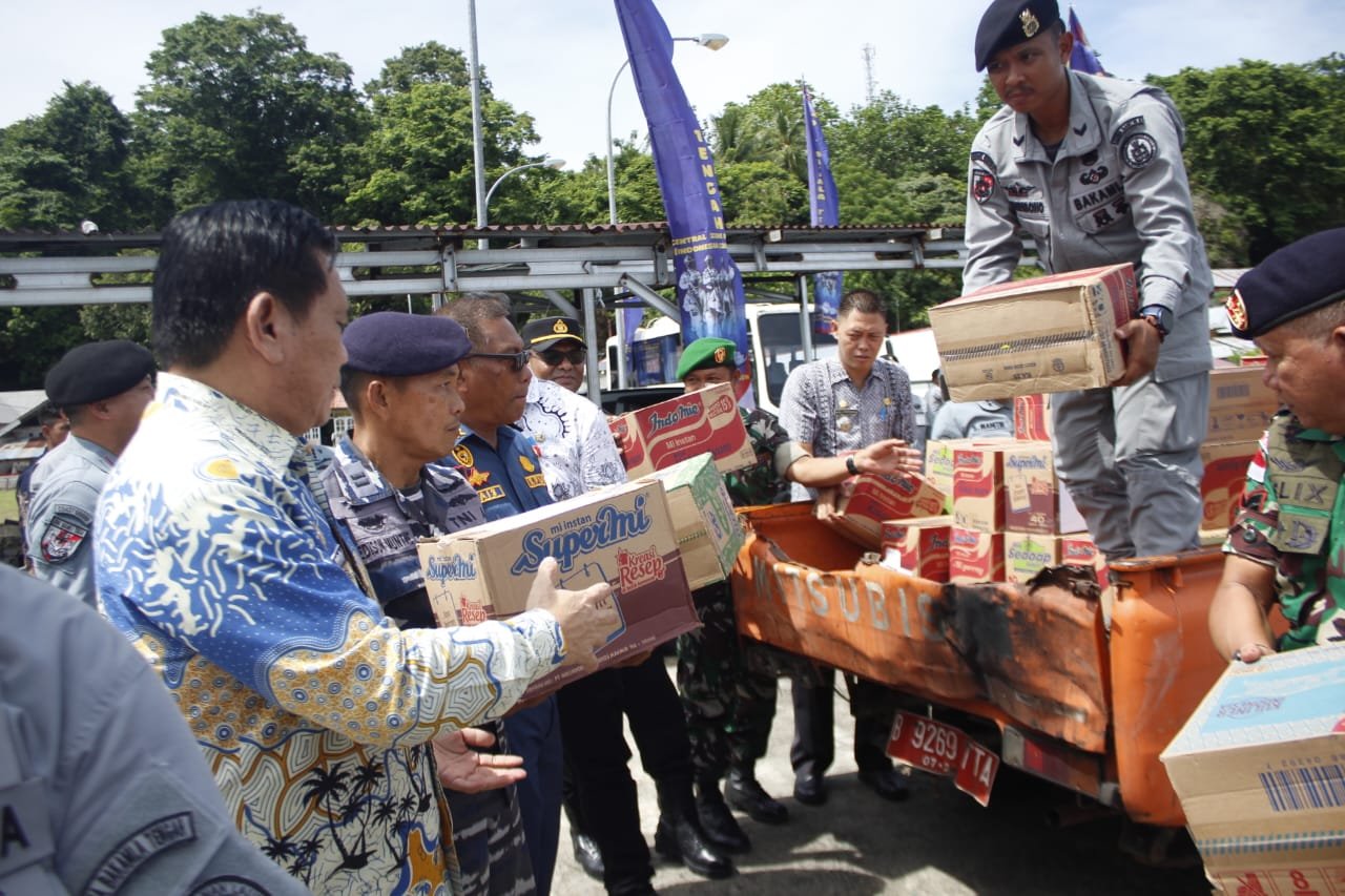 KN. Singa Laut-402 yang dikomandani oleh Letkol Bakamla Hadi Wahyono membawa berbagai kebutuhan logistik, antara lain bahan pangan, air minum, perlengkapan bayi dan perempuan, alat kebersihan, obat-obatan ringan, serta perlengkapan tidur. Bantuan tersebut merupakan hasil sinergi dari Zona Bakamla Tengah, Balai Monitor Spektrum Frekuensi Radio Kelas II Manado, BPBD, Badan Kesbangpol Sulawesi Utara, serta partisipasi aktif masyarakat.