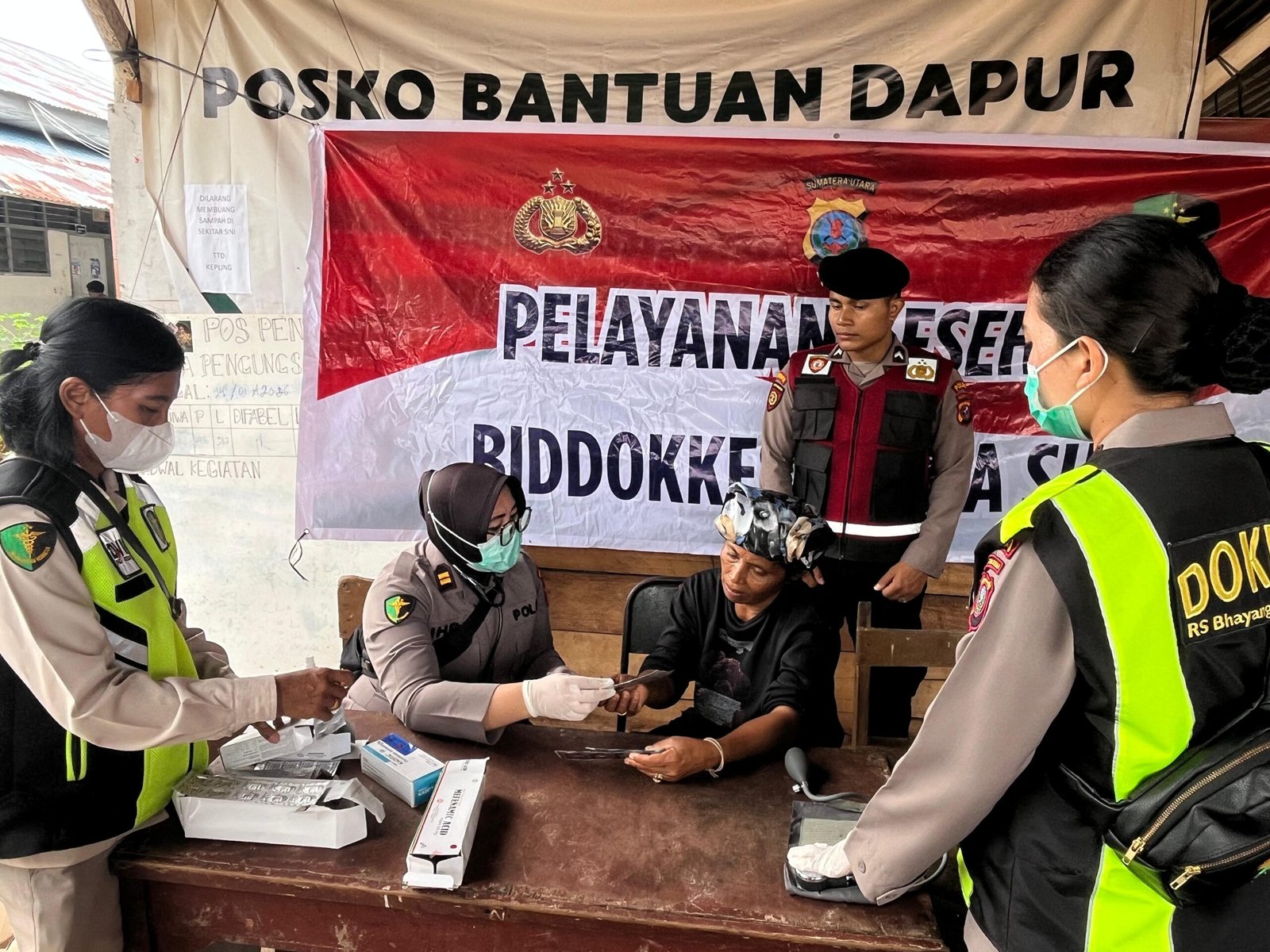 “Kehadiran kami merupakan wujud nyata kepedulian Polri dalam membantu masyarakat, khususnya dalam menjaga stabilitas kesehatan pascabencana agar tidak terjadi wabah penyakit di lokasi pengungsian,” ujar Iptu dr. Ihda Hayati Lubis.