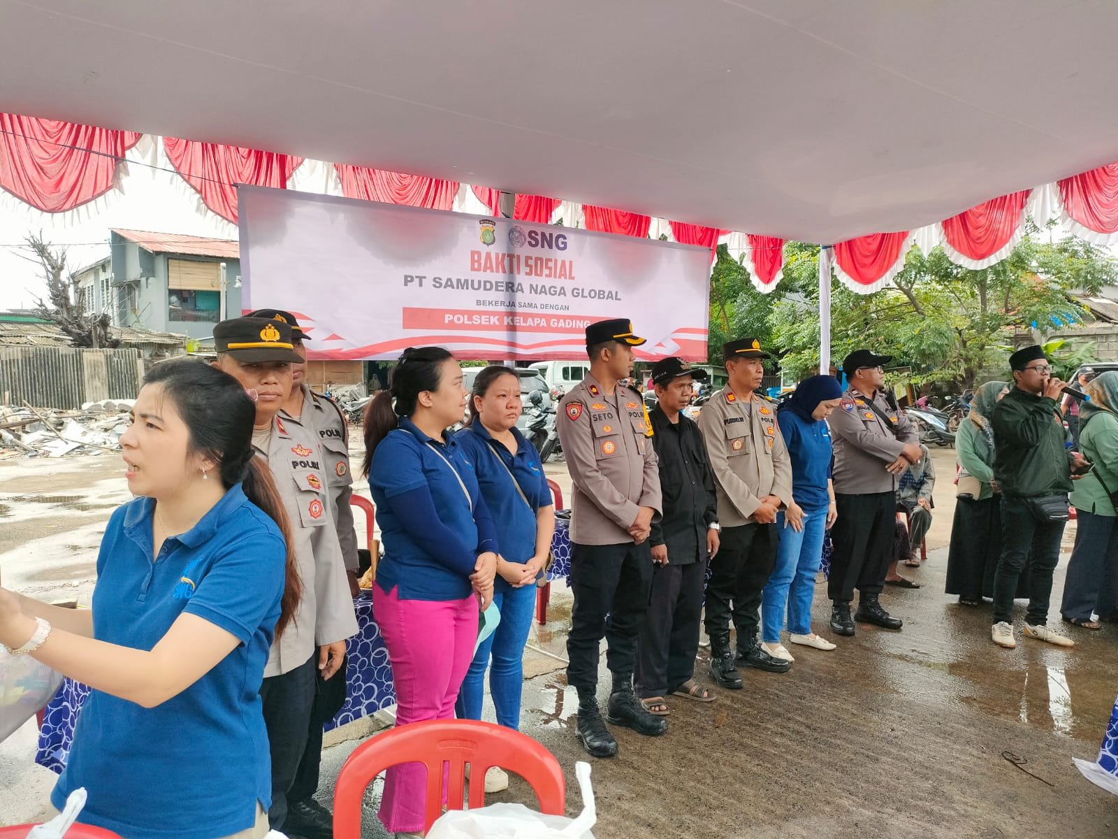 Kegiatan yang dimulai pukul 08.00 WIB ini dihadiri langsung oleh Kapolsek Kelapa Gading Kompol Seto Handoko Putra, S.I.Kom, S.IK, dan jajaran, serta pimpinan PT. Samudera Naga Global (SNG) Charles dan David. Turut hadir Ketua RW 04 Rosuli, dan warga sekitar 1.000 warga antusias mengikuti acara.
