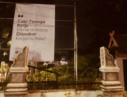 Dalam baliho tersebut tertulis, “Calo Tenaga Kerja di Mana-Mana, Disnaker Kerjamu Apa?” yang membuat sejumlah warga pun menjadi geram kepada instansi yang punya kewenangan pada ranah itu