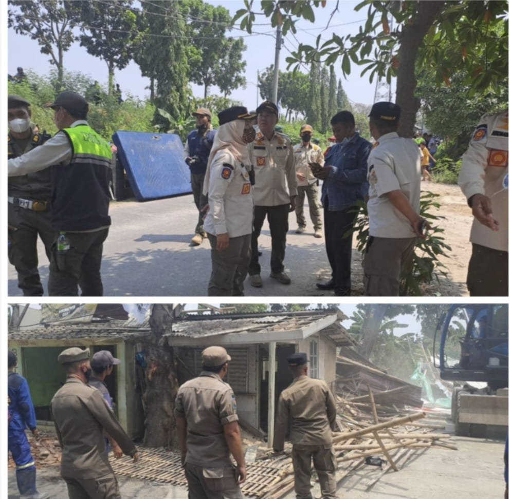 Penegakan Perda tepatnya di Jalan Karang Tengah RT. 01 RW. 09 kelurahan Rorotan kecamatan Cilincing Jakarta Utara, Rabu (12/9/2023).
