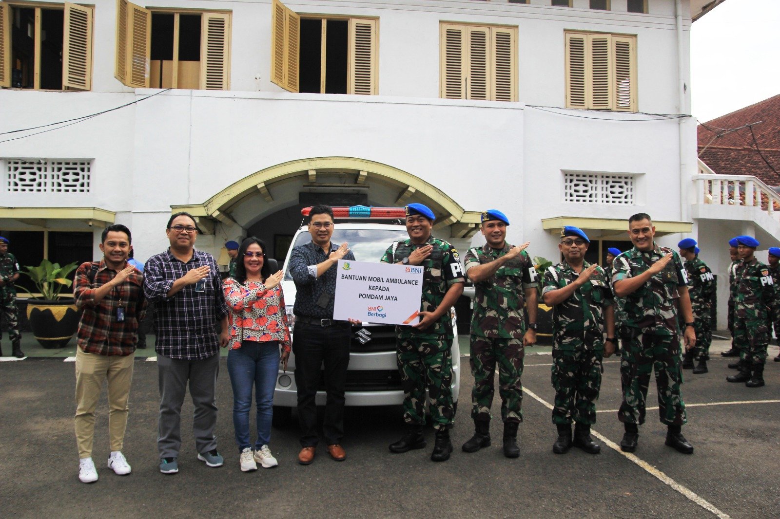 Pomdam Jaya – Jakarta Selatan, Sebagai bentuk kepedulian social dan kesehatan BNI memberikan bantuan berupa mobil ambulance kepda Pomdam Jaya yang diharapkan bermanfaat bagi warga Pomdam Jaya dan masyarakat di sekitar wilayah Markas Pomdam Jaya.