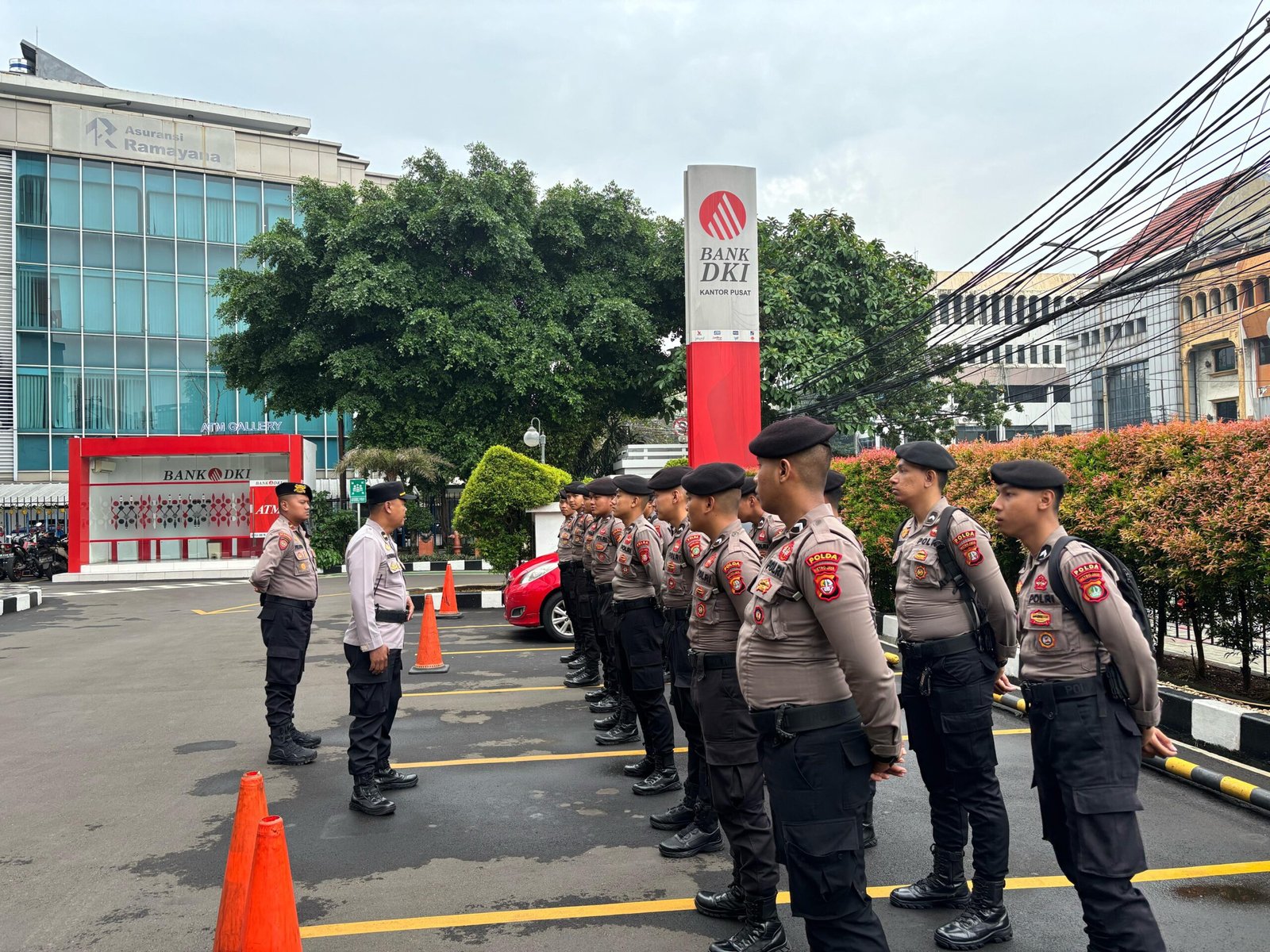 refubliknews.com, || Jakarta Pusat – Polres Metro Jakarta Pusat menurunkan 41 personel untuk mengantisipasi potensi unjuk rasa di kantor Bank DKI, Jalan Suryo Pranoto, Gambir, Kamis (17/4/2025) pagi. Pengamanan dipimpin langsung oleh Ipda Sutarman dari Polsek Gambir.