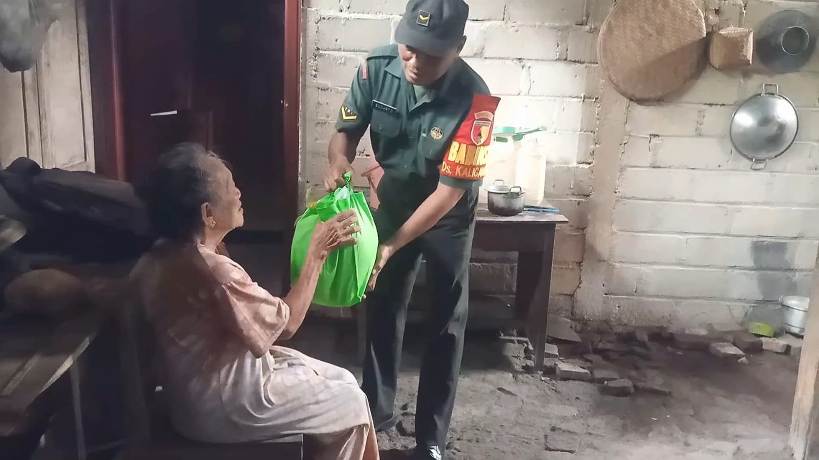 Serda Sudarto berkunjung ke rumah warga binaannya, untuk memberikan bantuan berupa paket sembako kepada Ibu Misirah warga Desa Kaligambir Kecamatan Panggungrejo.