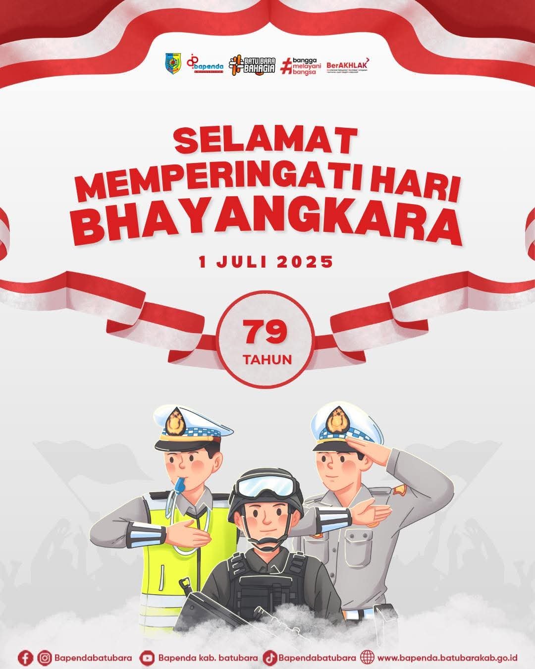 Bapenda Kabupaten Batubara mengucapkan selamat Hari Ulang Tahun (HUT) Bhayangkara yang ke -79 Tahun pada tanggal 1 Juli 2025.