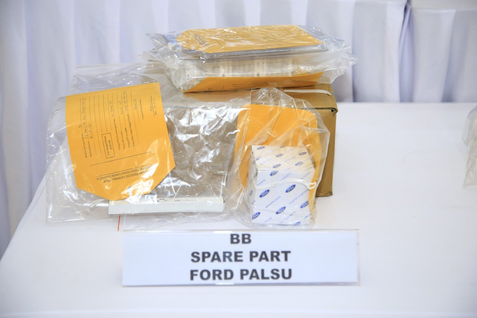 “Kami menyita barang bukti 1.396 dus kampas rem berbagai merk (Toyota, Honda, Daihatsu, Mitsubishi, Isuzu, dan Ford), tiga mesin potong, empat mesin cetak, satu mesin lem press, dll,” ujar Direktur.