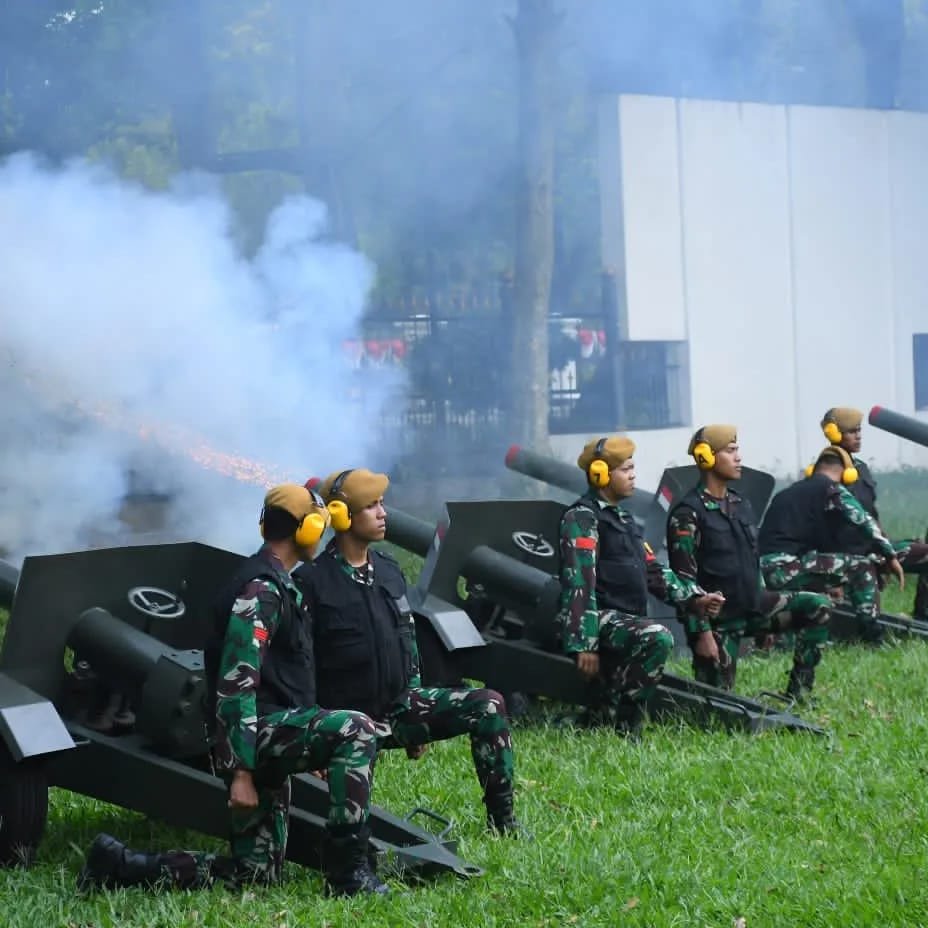 Penembakan Kehormatan dilaksanakan menggunakan meriam kaliber 75 mm sebanyak 6 pucuk.