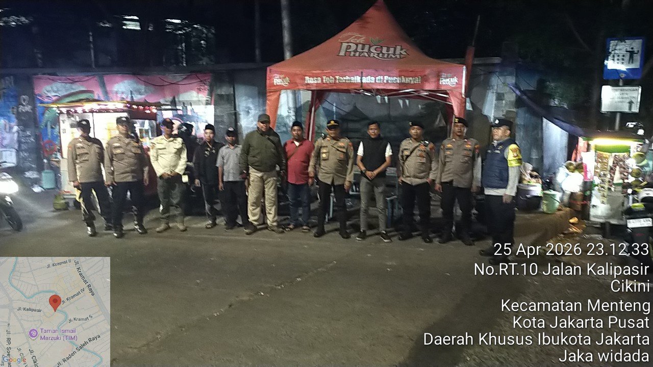 Jakarta Pusat – Upaya menjaga keamanan dan ketertiban masyarakat (kamtibmas) terus diperkuat jajaran Polsek Metro Menteng melalui kegiatan patroli cipta kondisi (cipkon) yang menyasar wilayah perbatasan rawan. Kali ini, patroli difokuskan di kawasan perbatasan Kwitang–Kalipasir, Menteng, Jakarta Pusat, guna memastikan situasi tetap aman dan terkendali, khususnya pada malam hari. Minggu (26/4/2026)
