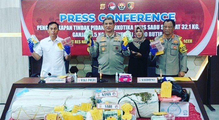 Wakapolda Aceh, Brigjen Pol Armia Fahmi menyampaikan informasi ini dalam konfrensi pers pengungkapan tindak pidana narkotika di Aula Machdum Sakti Mapolda Aceh, Banda Aceh, pada Senin 15 Januari 2024.