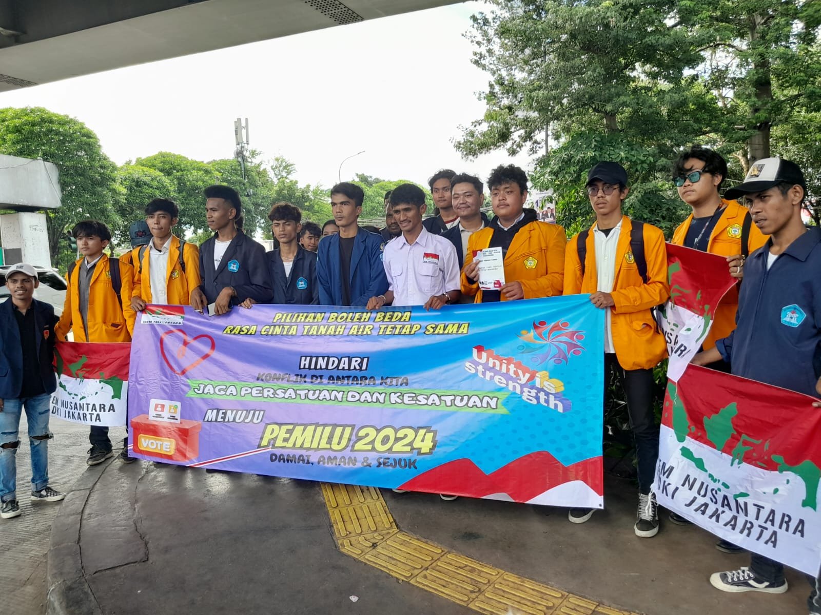 Kafi Saputra Presiden Mahasiswa Institut Bisnis & Informatika (IBI) Kosgoro 1957 menyampaikan ajakan kepada masyarakat sekitar mewujudkan pemilu 2024 dengan damai, aman dan sejuk.Kita mengajak masyarakat menciptakan pemilu 2024 dengan damai, melalui aksi bagi selembaran edukasi pemilu di beberapa titik wilayah DKI Jakarta yang kita bagikan langsung kepada masyarakat, Selasa(16/01/2024).