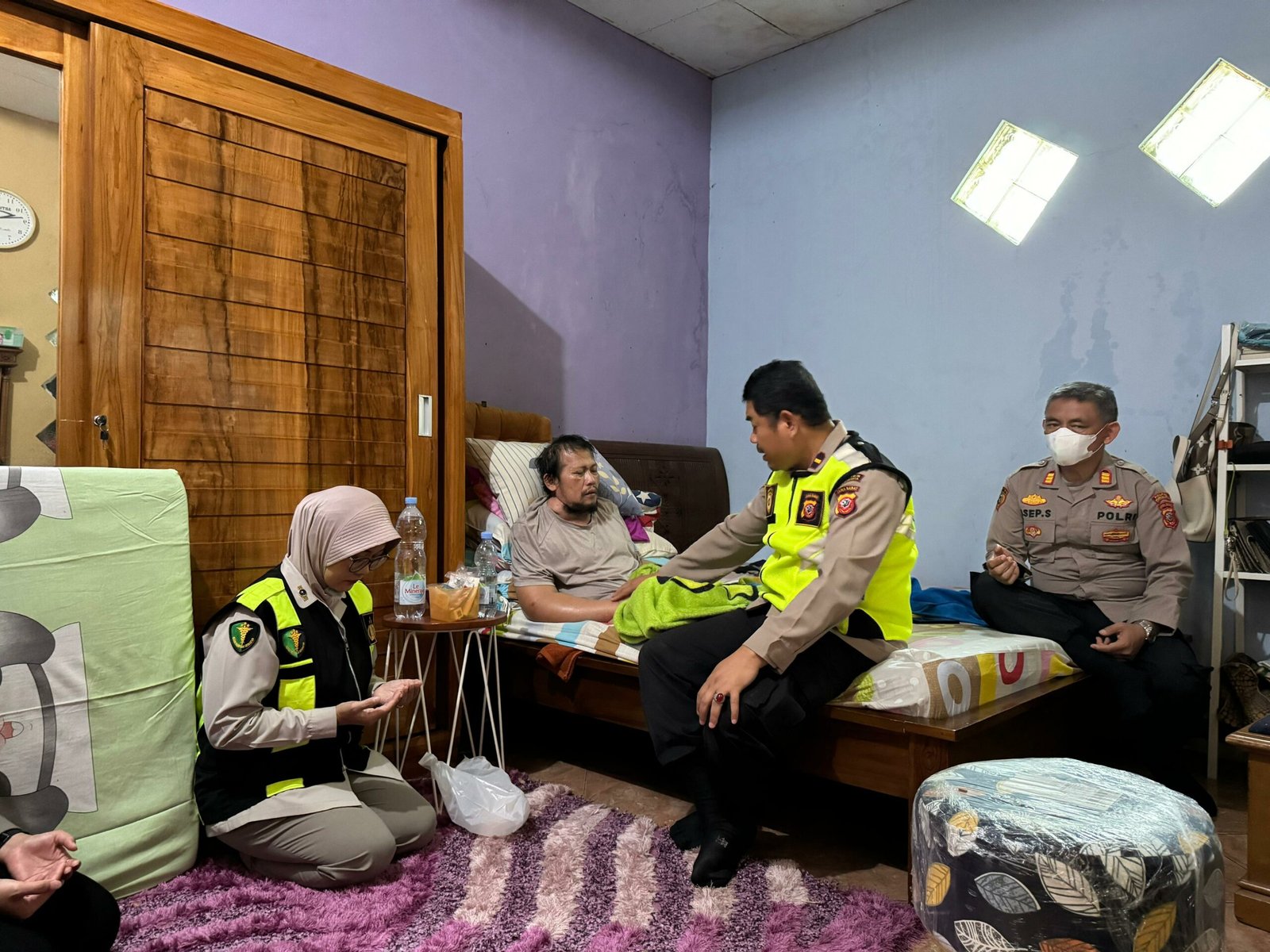 Purwakarta – Kapolres Purwakarta, AKBP Edwar Zulkarnain diwakili personel Bagian SDM Polres Purwakarta jenguk anggota Ba Subbag Binkar Bag SDM Polres Purwakarta, AIPTU Hendar Hartana, yang mengalami sakit.