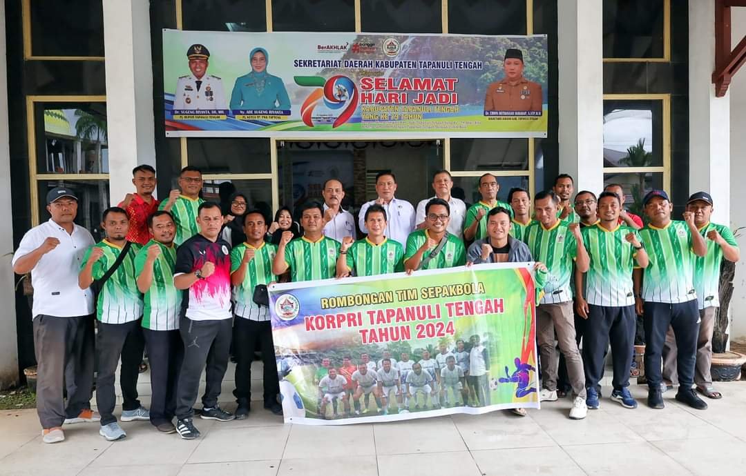 PANDAN – Sekretaris Daerah Kabupaten (Sekdakab) Tapanuli Tengah (Tapteng), Dr. Erwin Hotmansah Harahap, S.STP, MM, memberangkatkan Tim Sepakbola Korpri Kabupaten Tapanuli Tengah di Kantor Bupati Kabupaten Tapanuli Tengah, pada hari Rabu (18/9/2024).