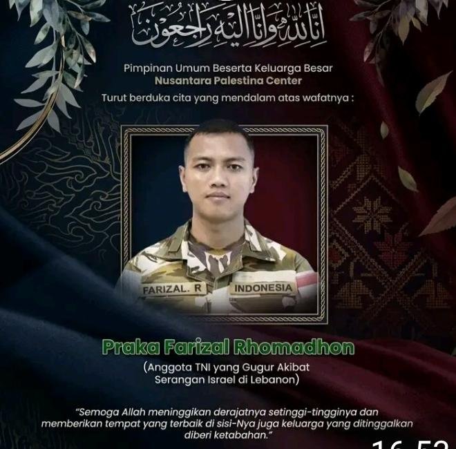 Tentara Nasional Indonesia (TNI) menyampaikan rasa berduka mendalam atas gugurnya satu prajurit TNI serta korban luka yang terjadi karena adanya insiden di daerah penugasan _United Nations Interim Force in Lebanon (UNIFIL) akibat eskalasi situasi keamanan pada Minggu, 29 Maret 2026 di Lebanon Selatan.