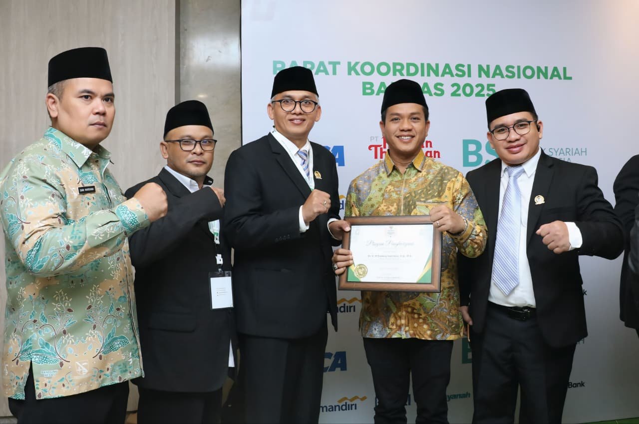 Penghargaan diserahkan Ketua Baznas RI Prof. KH. Noor Ahmad yang didampingi para pimpinan Baznas di sela-sela Rakornas Baznas di Mercure Ancol Jakarta, Kamis 28 Agustus 2025.