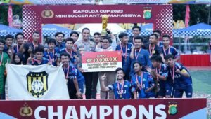 POLDA METRO JAYA – Kejuaraan Kapolda Cup 2023 Mini Soccer antar mahasiswa dalam rangka HUT Bhayangkara ke-77 dan Bakti Polri Tahun 2023 resmi ditutup hari ini.