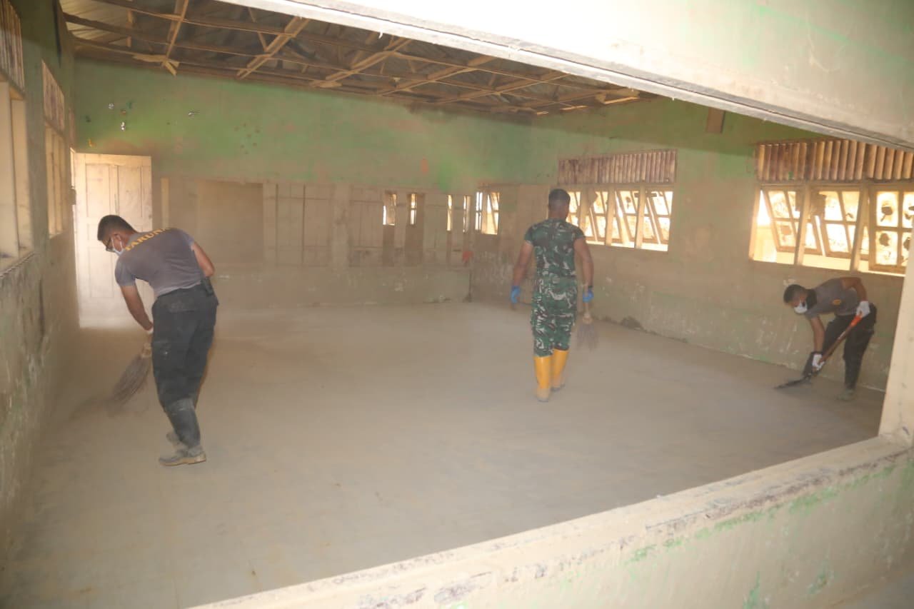 Para Taruna bersama-sama melakukan pembersihan lumpur di ruang-ruang kelas agar sekolah dapat segera digunakan kembali untuk kegiatan belajar mengajar.Taruna Akpol, Sultan Rekha Alfarabbi Firdaus, menjelaskan bahwa kondisi lumpur di dalam ruangan sekolah masih cukup tebal sehingga membutuhkan penanganan serius.