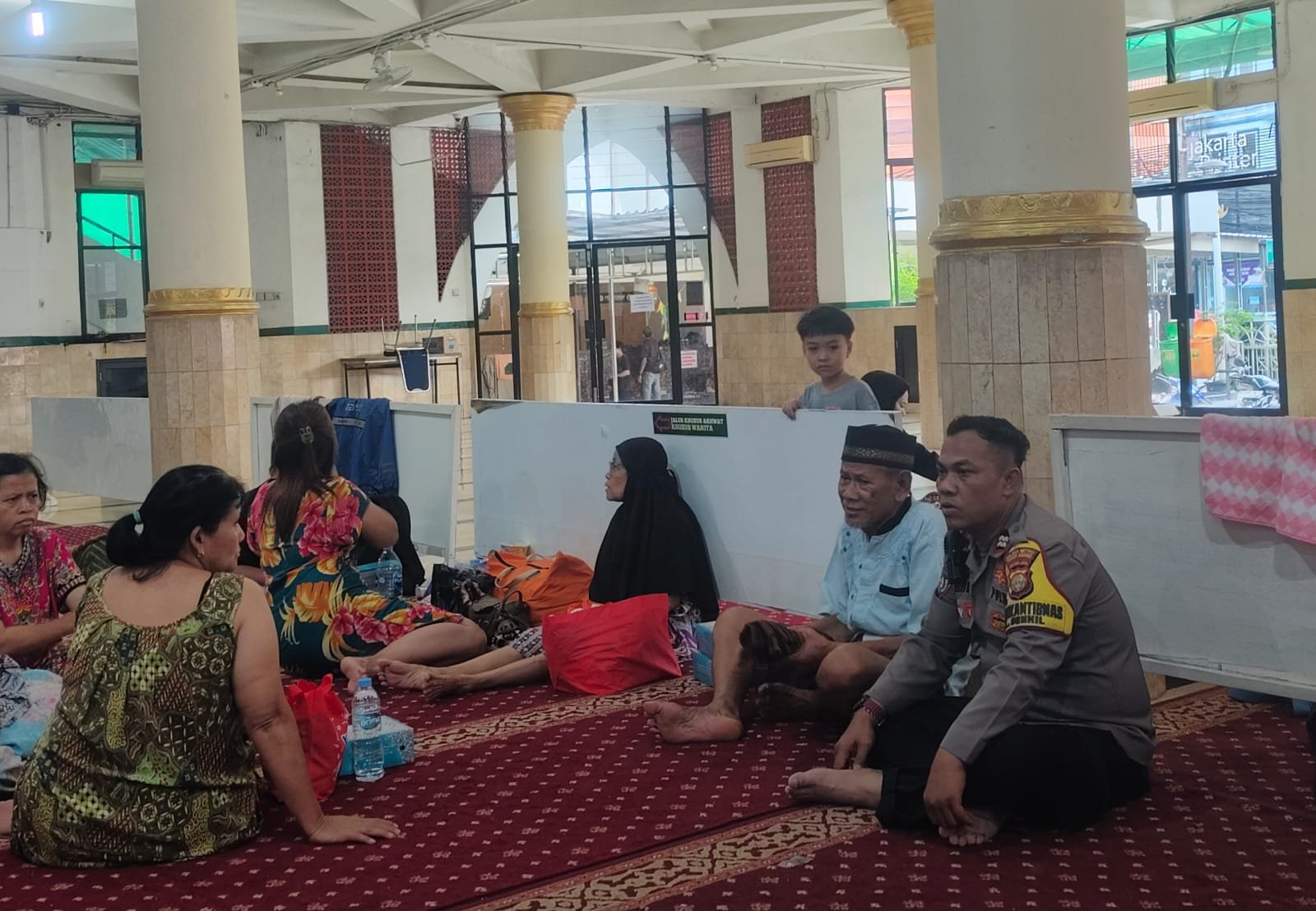 Jakarta Pusat — Bhabinkamtibmas Kelurahan Bendungan Hilir Aiptu Heri Murgianta melakukan monitoring dan pendampingan kegiatan penyaluran bantuan dari Dinas Sosial DKI Jakarta kepada warga yang mengungsi akibat genangan air di Masjid Al-Fallah, RW 01 Kelurahan Bendungan Hilir, Kecamatan Tanah Abang, Jakarta Pusat, Minggu (8/3/2026), sore hari.