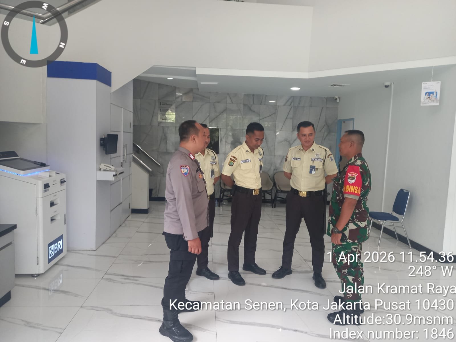 Pada Rabu (1/4), sekitar pukul 11.30 WIB, Bhabinkamtibmas Kelurahan Kenari Bripka M. Faisal bersama Babinsa Kenari Serka Gondo melaksanakan sambang dialogis ke Kantor BRI Cabang Kramat yang berlokasi di Jalan Kramat Raya No. 138, Senen, Jakarta Pusat.