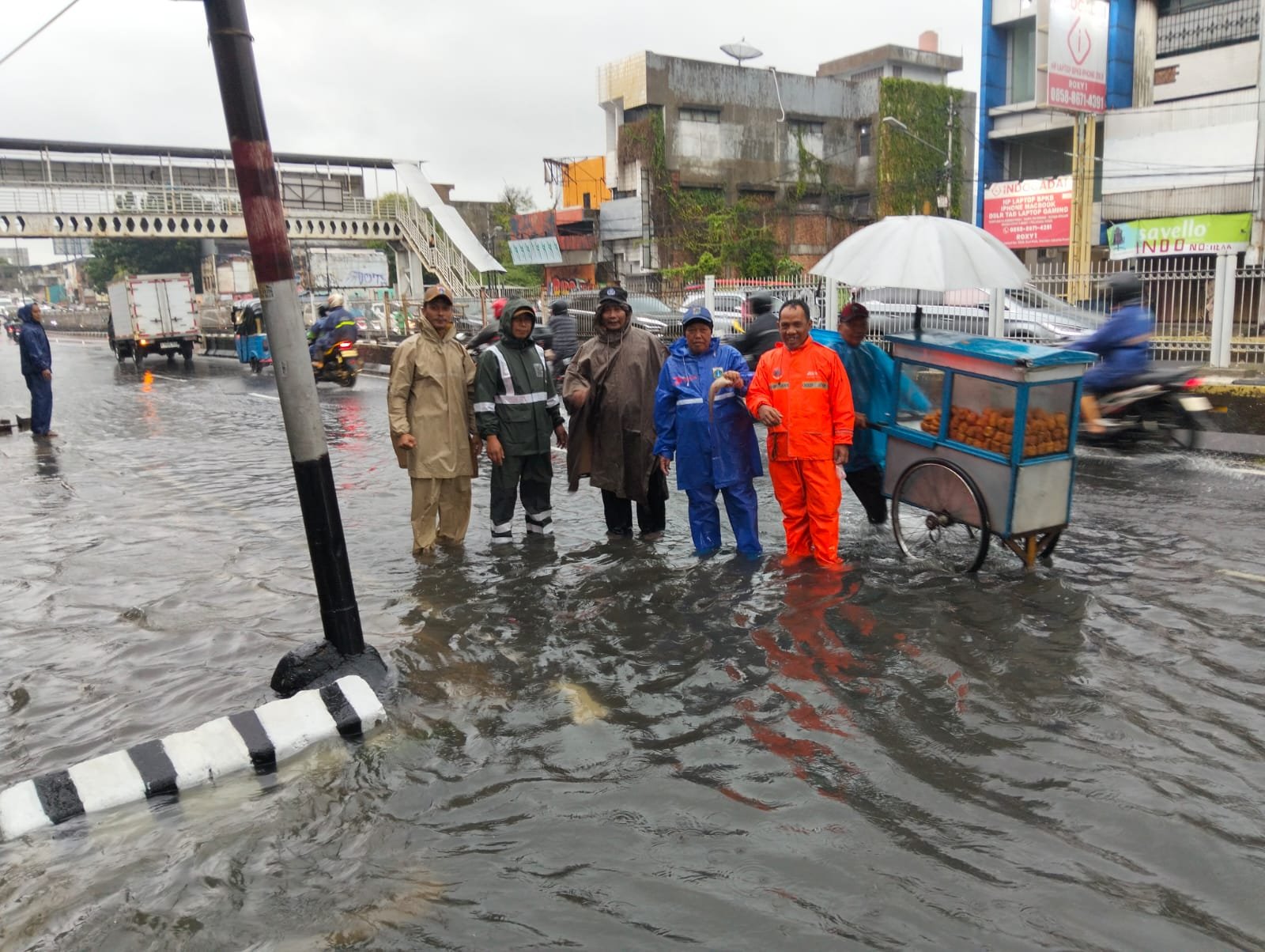 Hasil pemantauan di lokasi menunjukkan adanya genangan air dengan ketinggian sekitar 25 sentimeter. Meski demikian, arus lalu lintas masih dapat dilalui satu jalur. Saat kegiatan berlangsung, kondisi cuaca terpantau gerimis.