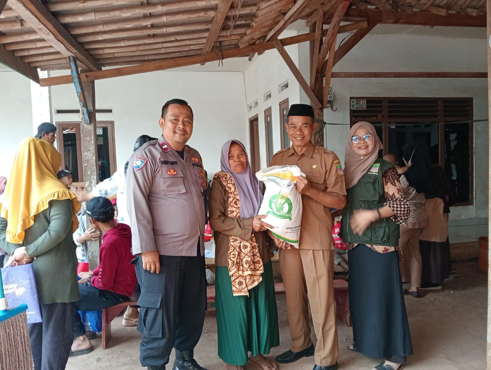 Dalam giat tersebut, Aipda Derry memastikan pendistribusian bantuan berjalan dengan tertib dan tepat sasaran. Bersama Babinsa, mereka memantau langsung penyerahan paket bantuan yang berisi bahan pokok seperti beras, minyak goreng, dan kebutuhan pangan lainnya kepada warga yang telah terdaftar dalam program.