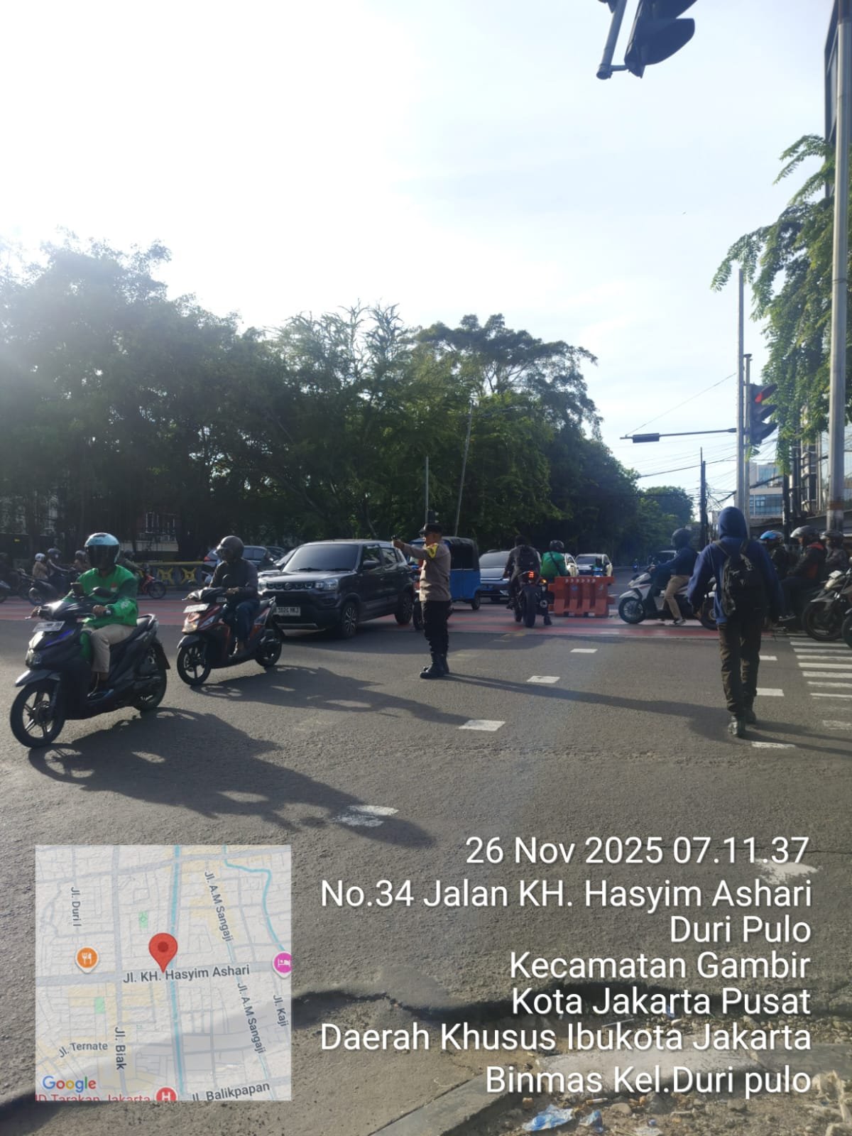 refubliknews.com, || Jakarta Pusat — Pagi di kawasan Simpang Traffic Light (TL) Cideng, tepatnya di depan Holland Bakery Kelurahan Duri Pulo, selalu menjadi salah satu titik yang penuh dinamika. Arus kendaraan dari berbagai arah bertemu, para pekerja bergegas memulai hari, sementara pedagang kecil mulai menata lapak mereka. Di tengah riuhnya aktivitas itu, Aipda Purwanto, Bhabinkamtibmas Kelurahan Duri Pulo, kembali hadir untuk memastikan semuanya berjalan aman dan tertib, Rabu (26/11/2025).