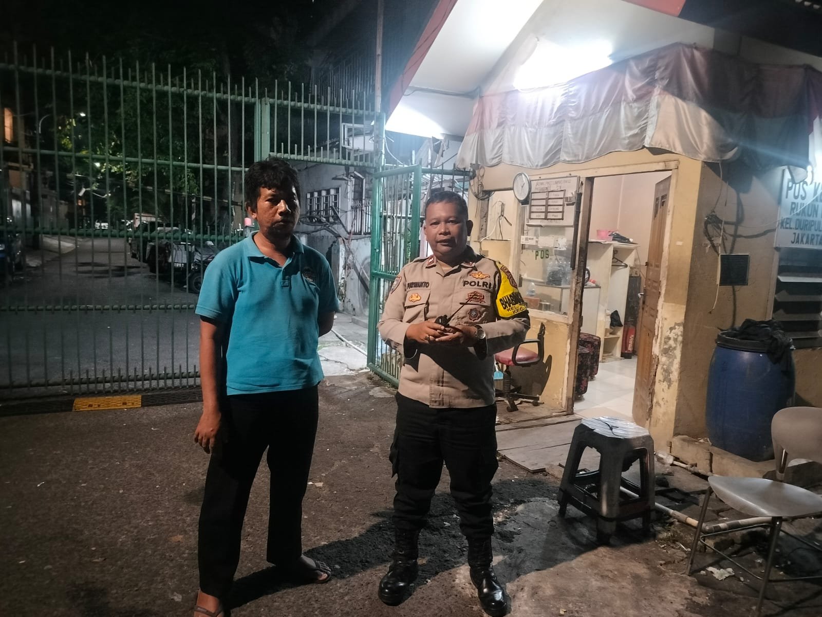 Kegiatan ini merupakan bagian dari langkah preventif yang rutin dilakukan oleh jajaran Polsek Metro Gambir guna memastikan keamanan lingkungan tetap terjaga, terutama di malam hari. Dalam kunjungannya, Aipda Purwanto bertemu dengan Bapak Tono selaku awak Satkamling setempat untuk memberikan arahan serta sejumlah imbauan kamtibmas.