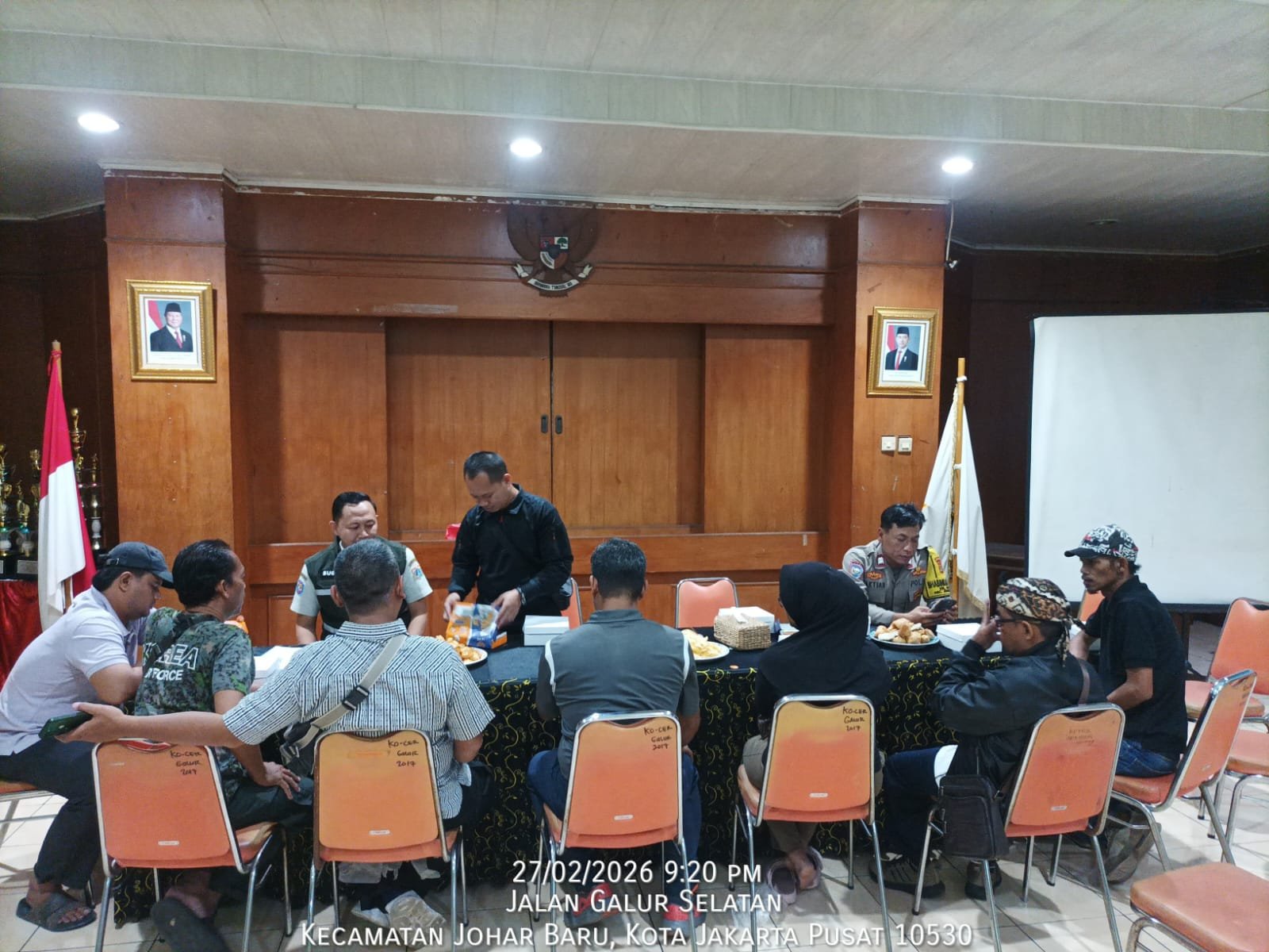 Jakarta Pusat – Guna memperkuat sinergi menjaga keamanan dan ketertiban masyarakat (kamtibmas) selama Bulan Suci Ramadhan 1447 H/2026, Bhabinkamtibmas Kelurahan Galur, Aiptu Baktiar, menghadiri Rapat Koordinasi (Rakor) Forum Kewaspadaan Dini Masyarakat (FKDM) pada Jumat (27/2/2026) pukul 22.00 WIB di Aula Lantai II Kelurahan Galur, Jl. Galur Jaya RT 01/04, Kecamatan Johar Baru, Jakarta Pusat.