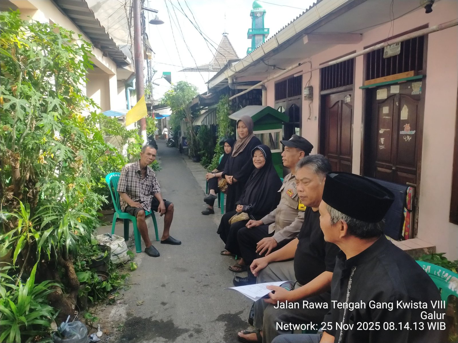 refubliknews.com, || Jakarta Pusat – Bhabinkamtibmas Kelurahan Galur Aiptu Baktiar melaksanakan kegiatan cooling system, sambang, dan takziah kepada keluarga almarhum M. Yunus (84) di RT 010/04 Jl. Rawa Tengah Gg. Kuwista VIII, Selasa (25/11/2025) pukul 09.00 WIB. Kegiatan ini turut dihadiri Ketua RT Pak H. Mamik, Pak Guswadi, serta warga sekitar.
