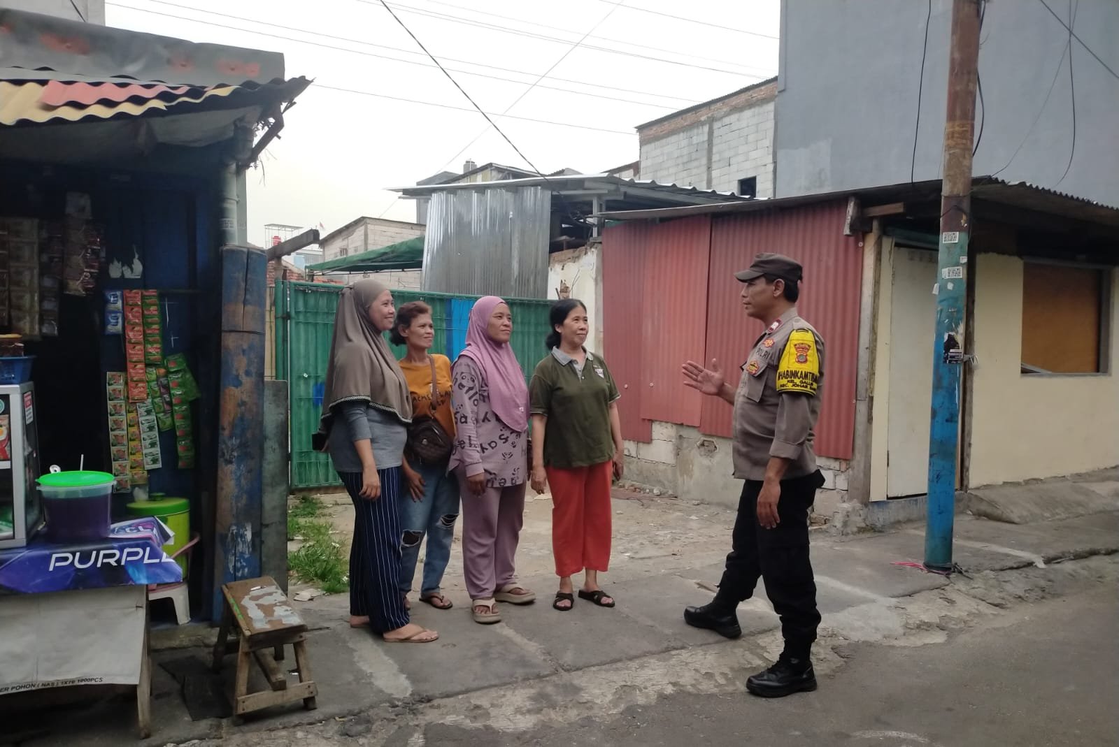 Dalam kegiatan tersebut, Aiptu Baktiar bertemu dengan Ibu Elis selaku Ketua RT 013/05 beserta warga. Ia menyampaikan pesan-pesan kamtibmas agar masyarakat aktif melakukan deteksi dini potensi gangguan keamanan, menjaga komunikasi antarwarga, serta segera berkoordinasi dengan kepolisian jika terjadi permasalahan di lingkungan.
