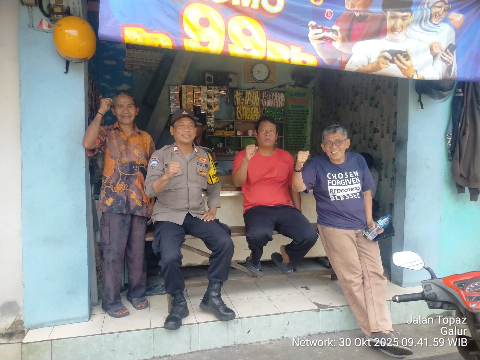 Kegiatan dilaksanakan di Warkop Jl. Galur Jaya RT.003/04, dengan melibatkan tokoh masyarakat setempat, yakni Pak Rahman selaku Ketua RT 004/03 dan Pak Dibyo Ketua RT 03/03 Galur, melalui metode Cooling System untuk mendekatkan aparat dengan warga.