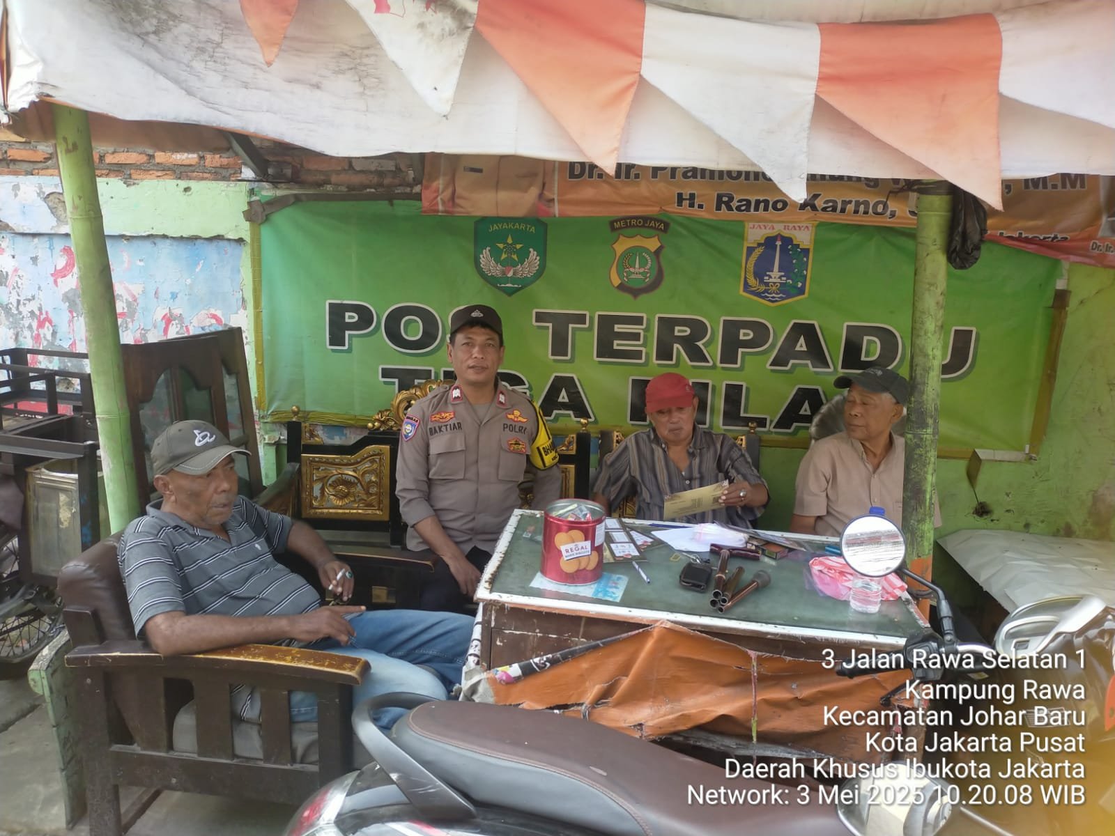 refubliknews.com, || Jakarta Pusat – Bhabinkamtibmas Kelurahan Galur, Aiptu Baktiar, melakukan kegiatan sambang di wilayah RW 04, Kelurahan Galur, Kecamatan Johar Baru, Jakarta Pusat, Sabtu (3/5/2025) pagi.