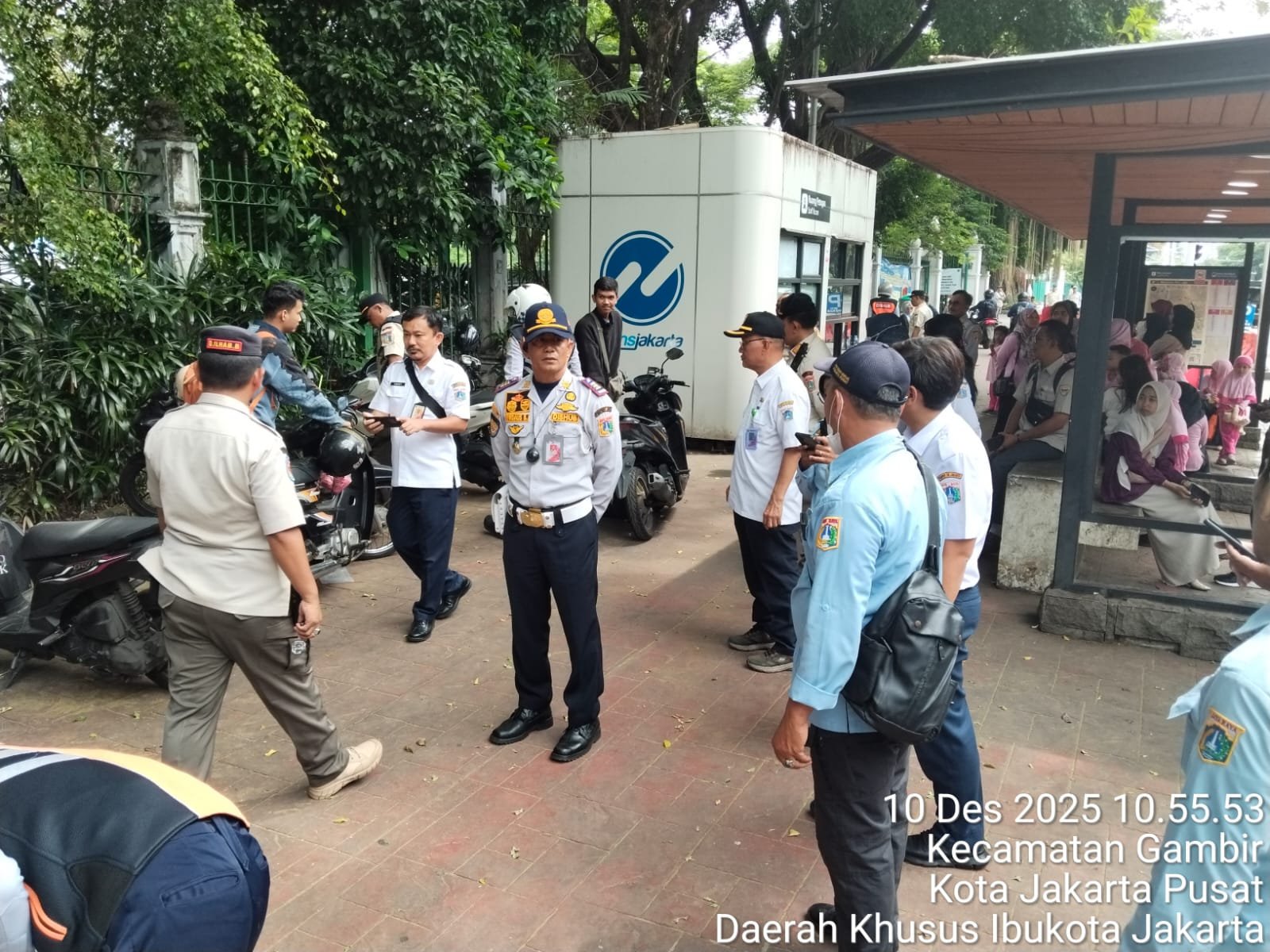Usai apel, kegiatan dilanjutkan dengan operasi gabungan di sejumlah titik. Penindakan dilakukan terhadap kendaraan roda dua yang parkir sembarangan melalui Operasi Cabut Pentil (OCP) oleh Dishub Kecamatan Gambir. Sebanyak 14 unit kendaraan di depan Museum Nasional, 9 unit di depan kantor Kemenkomdigi, 8 unit di area IRTI – Halte Busway, serta 1 unit di depan pintu masuk Pertamina, dilakukan penertiban demi menjaga ketertiban arus lalu lintas.