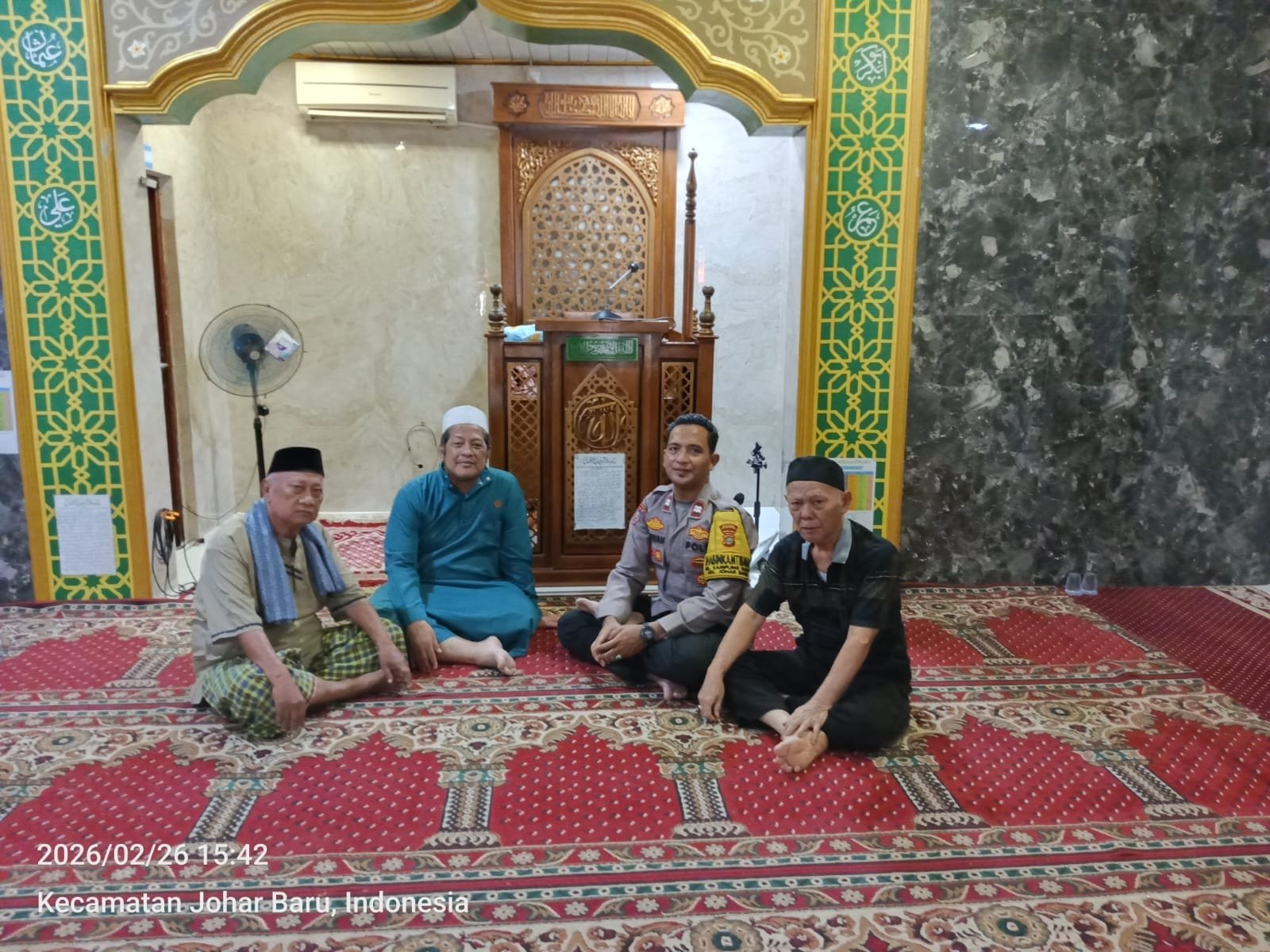 Jakarta Pusat – Polsek Johar Baru menggelar kegiatan cooling system sekaligus sambang DKM Masjid Jami Nurul Aini di Kelurahan Kampung Rawa, Kamis (26/2/2026) pukul 15.20 WIB. Kegiatan ini dipimpin Aiptu Ikhwan, Bhabinkamtibmas Kelurahan Kampung Rawa, yang turut melaksanakan solat Ashar berjamaah bersama jamaah masjid.