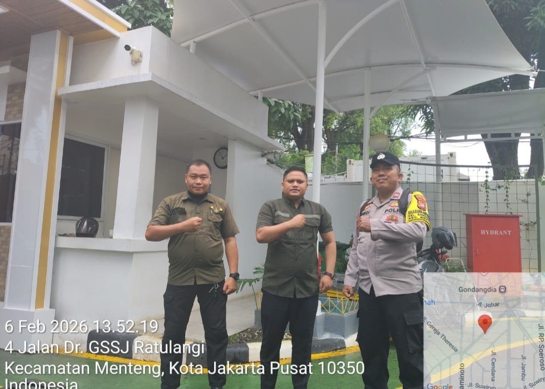 Jakarta Pusat – Dalam rangka menjaga keamanan dan ketertiban masyarakat (kamtibmas) di wilayah hukum Polsek Metro Menteng, Bhabinkamtibmas Kelurahan Gondangdia Aiptu Kamidi melaksanakan patroli dialogis di Kantor Badan Investasi Pemerintah Republik Indonesia, yang berlokasi di Jalan Samratulangi No. 17, Gondangdia, Menteng, Jakarta Pusat, pada Jumat (6/2/2026).