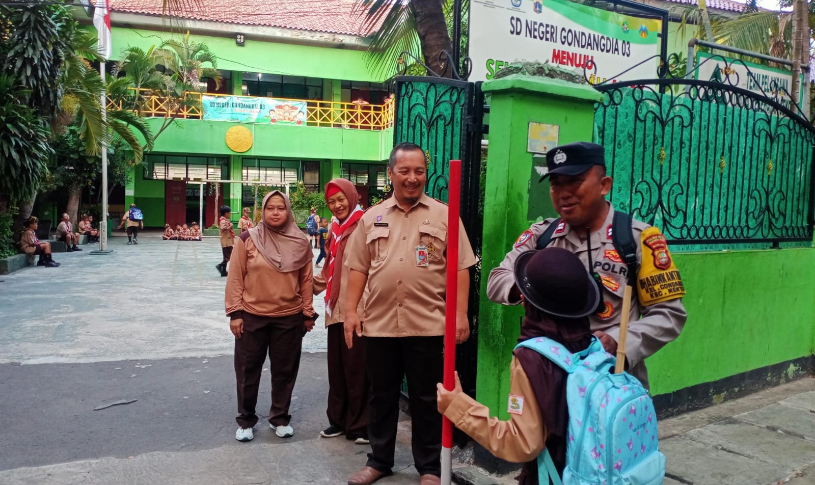 Kegiatan tersebut dipimpin oleh Bhabinkamtibmas Kelurahan Gondangdia, Aiptu Kamidi, sebagai bagian dari upaya preventif menjaga ketertiban lalu lintas di sekitar sekolah.