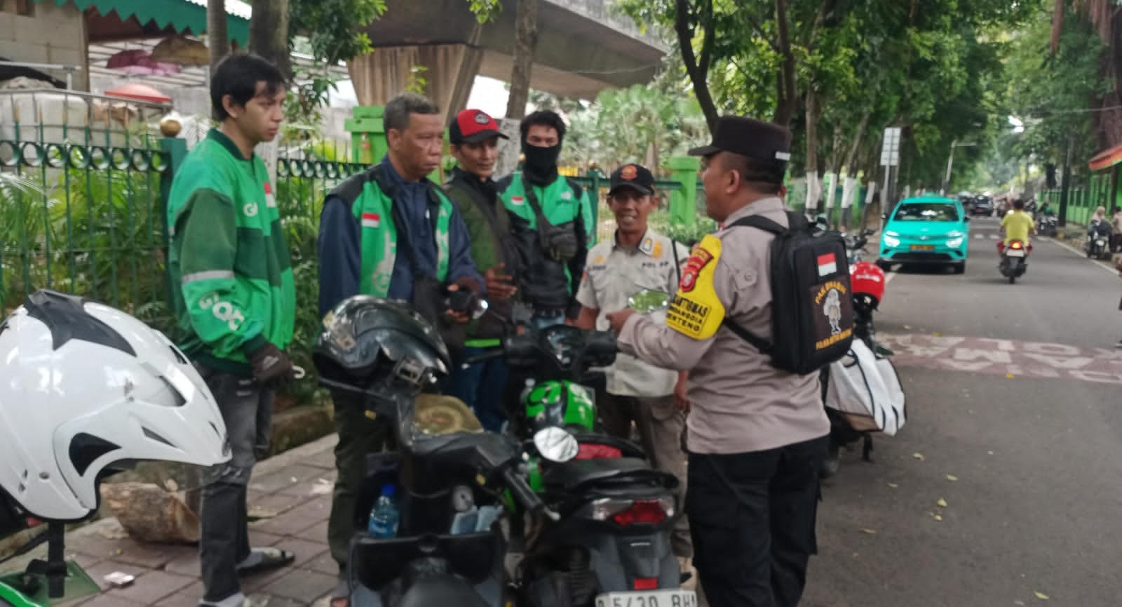 Kegiatan tersebut dilakukan sebagai bentuk pendekatan preventif dan komunikasi aktif dengan masyarakat, khususnya para pengemudi ojek online yang menjadi bagian penting dari aktivitas harian di wilayah tersebut.