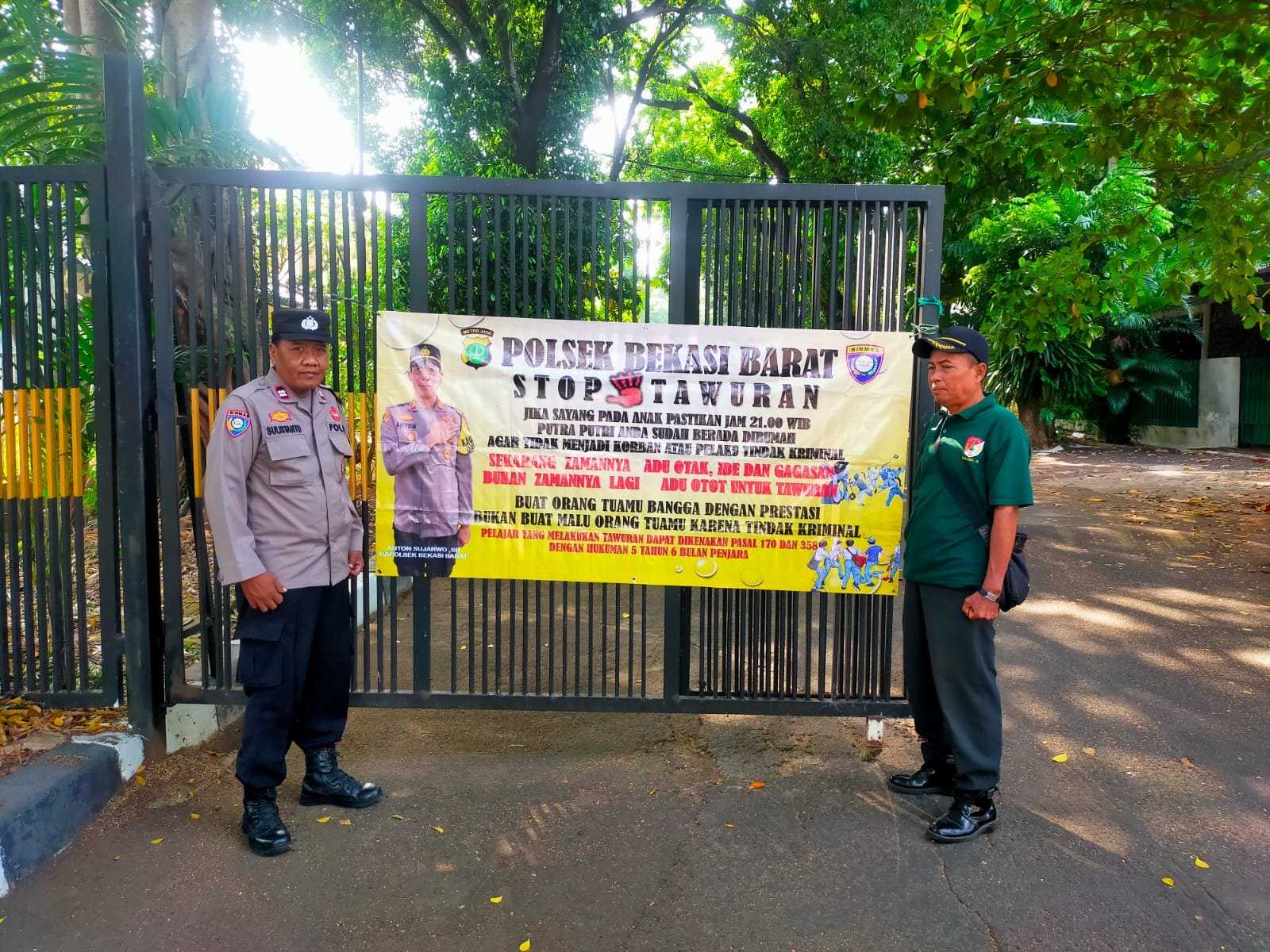 refubliknews.com, – Bekasi Barat – Aiptu Sulistanto, Bhabinkamtibmas Kelurahan Jakasampurna, Kecamatan Bekasi Barat, memasang spanduk bertuliskan “Stop Tawuran” di Pos Keamanan Perumahan Jaka Permai RT 08/06, Minggu (20/10/2024). Kegiatan yang berlangsung mulai pukul 11.20 WIB hingga selesai ini dilakukan bersama petugas keamanan perumahan, Bapak Supandi.
