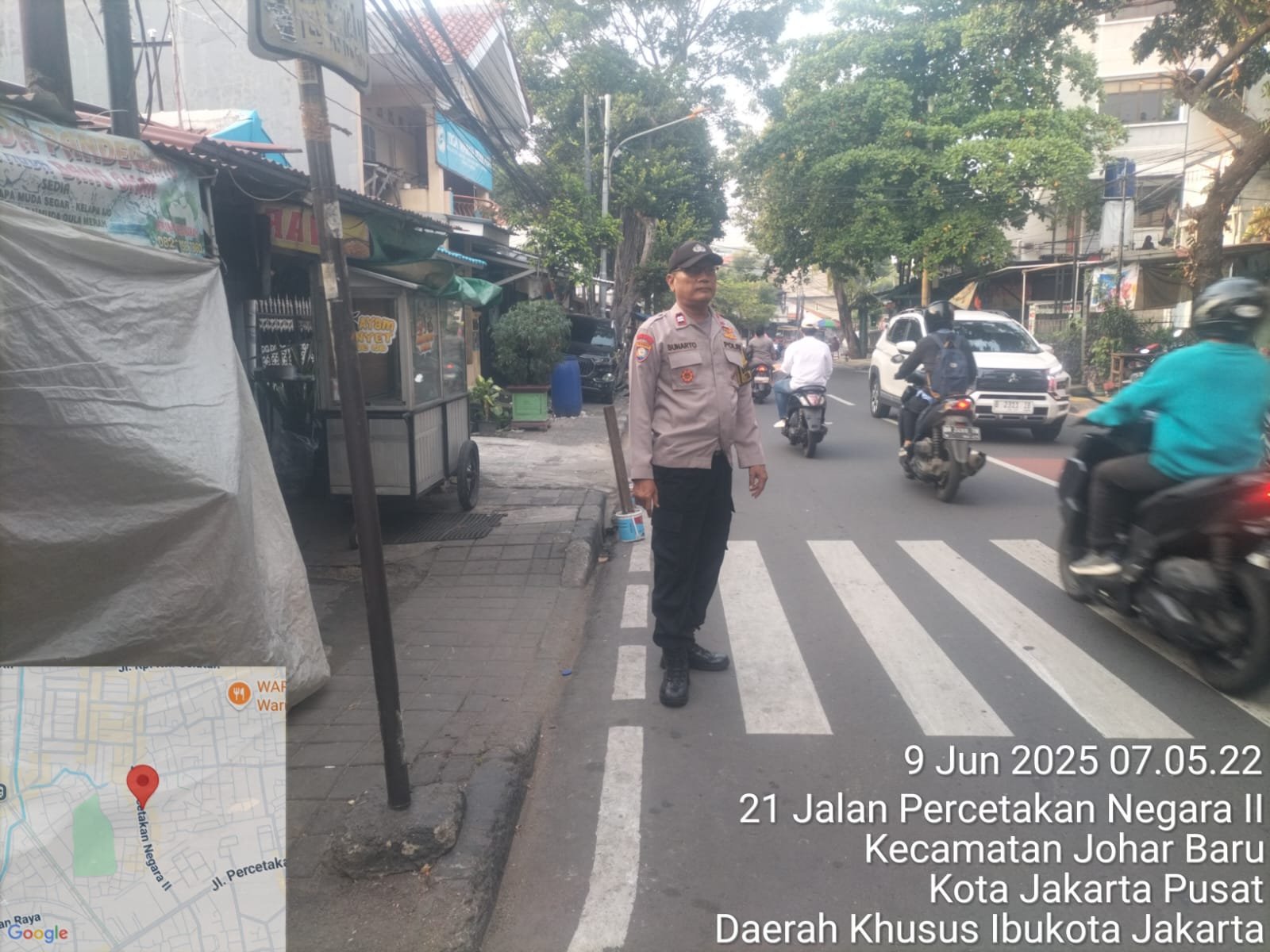 refubliknews.com, || Jakarta Pusat – Dalam rangka menciptakan keamanan dan ketertiban lalu lintas di wilayah Johar Baru, Bhabinkamtibmas Johar Baru, Aiptu Sunarto, pagi ini (Senin, 9 Juni 2025) melakukan pengaturan lalu lintas di depan SMK Kampung Jawa, Jl. Percetakan Negara II, Johar Baru, Jakarta Pusat.
