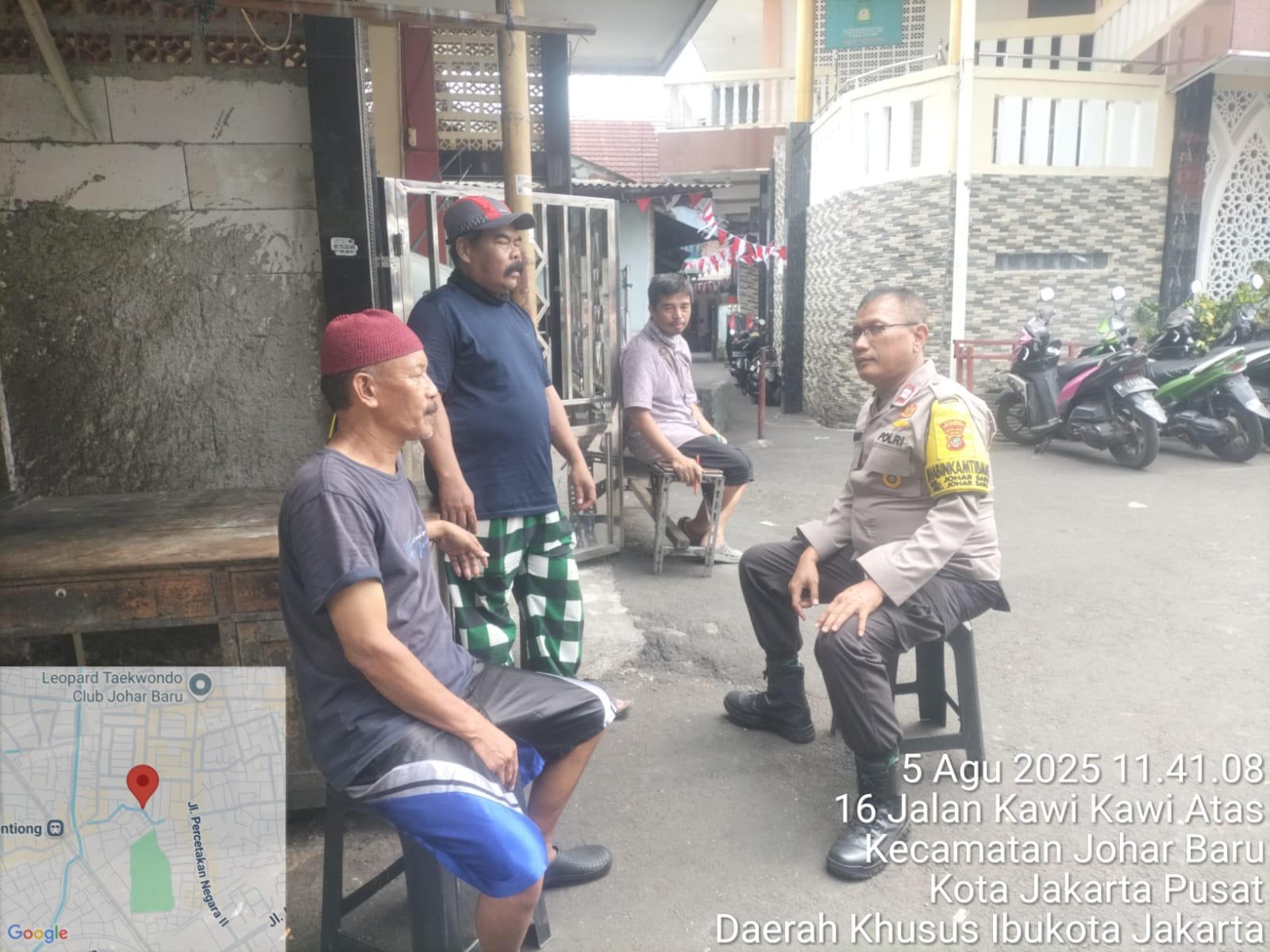 refubliknews.com, || Jakarta Pusat – Dalam rangka menjaga stabilitas keamanan dan menciptakan situasi yang kondusif di wilayah hukum Polsek Johar Baru, Bhabinkamtibmas Kelurahan Johar Baru Aiptu Sunarto melaksanakan kegiatan patroli dialogis dan sambang warga di wilayah RW 08, tepatnya di Jl. Kramat Jaya Baru IV RT 18/RW 08, Kelurahan Johar Baru, Jakarta Pusat, pada Selasa (5/8/2025) pukul 11.40 WIB.
