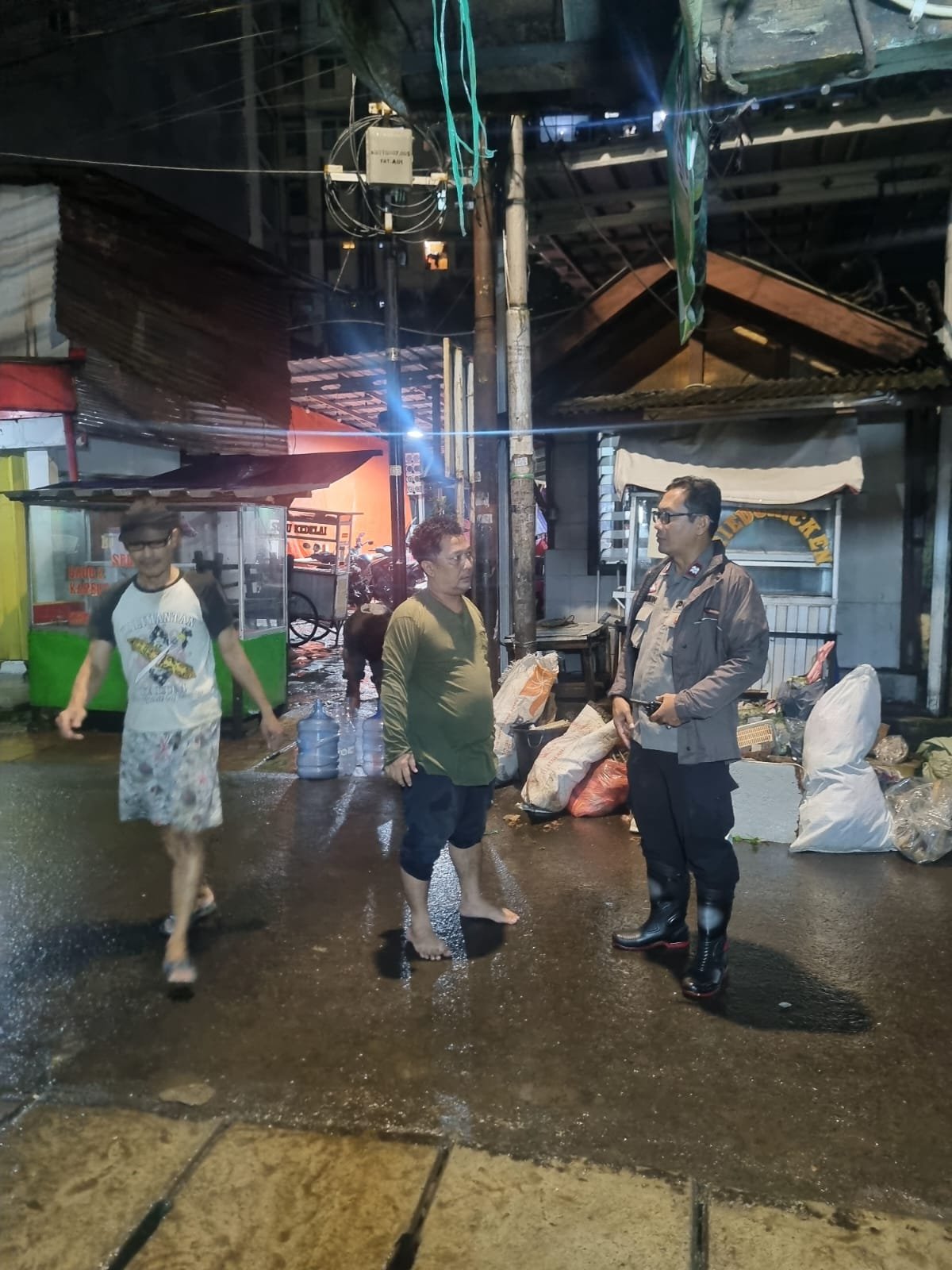 Jakarta Pusat — Bhabinkamtibmas Kelurahan Karet Tengsin Aiptu Suparmin melaksanakan kegiatan monitoring dan pengecekan genangan air di lingkungan warga yang berada di bantaran Kali Krukut, Kamis malam (22/01/2026).