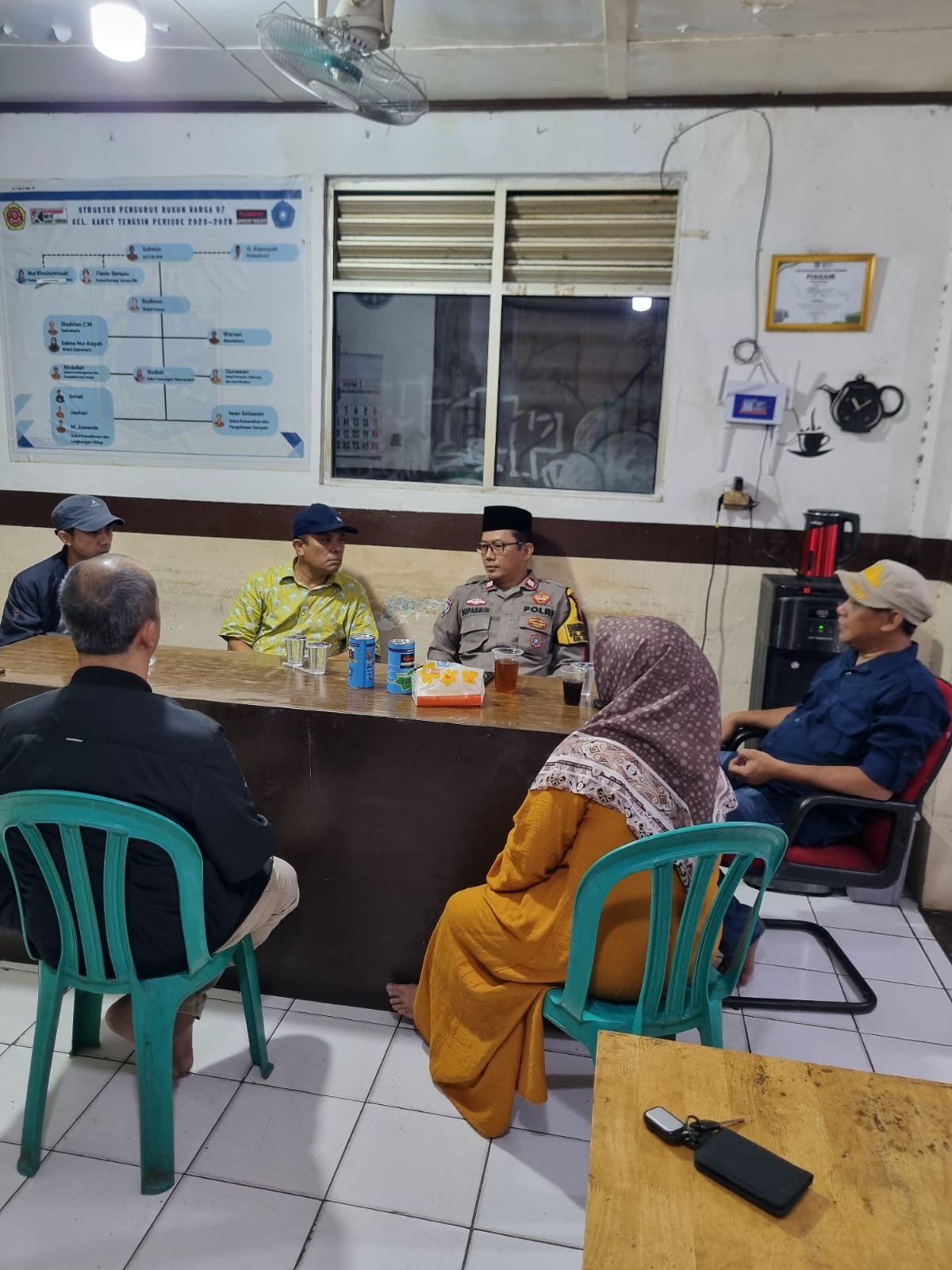 Dalam sambang tersebut, Bhabinkamtibmas Kelurahan Karet Tengsin, Aiptu Suparmin, S.H., bertemu langsung dengan Bapak Suharjo selaku Ketua RW 07, para Ketua RT, serta staf RW setempat. Pertemuan berlangsung dalam suasana dialogis dan penuh keakraban, dengan membahas berbagai potensi gangguan keamanan yang perlu diantisipasi bersama.