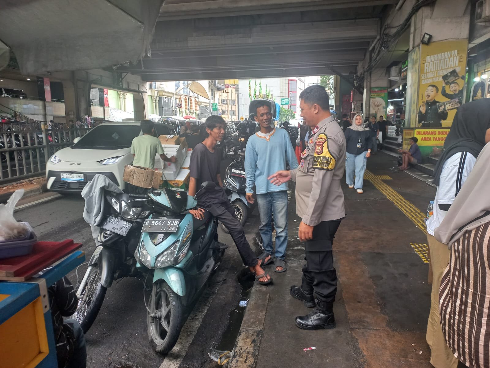 Jakarta Pusat — Dalam rangka menjaga situasi keamanan dan ketertiban masyarakat (kamtibmas) tetap kondusif, Bhabinkamtibmas Kelurahan Kebon Kacang Aiptu Suhartono melaksanakan kegiatan sambang dan patroli dialogis ke pangkalan ojek yang berada di Jalan Fachrudin RW 07, Kebon Kacang, Tanah Abang, Jakarta Pusat, pada Selasa (30/12/2025). siang hari.