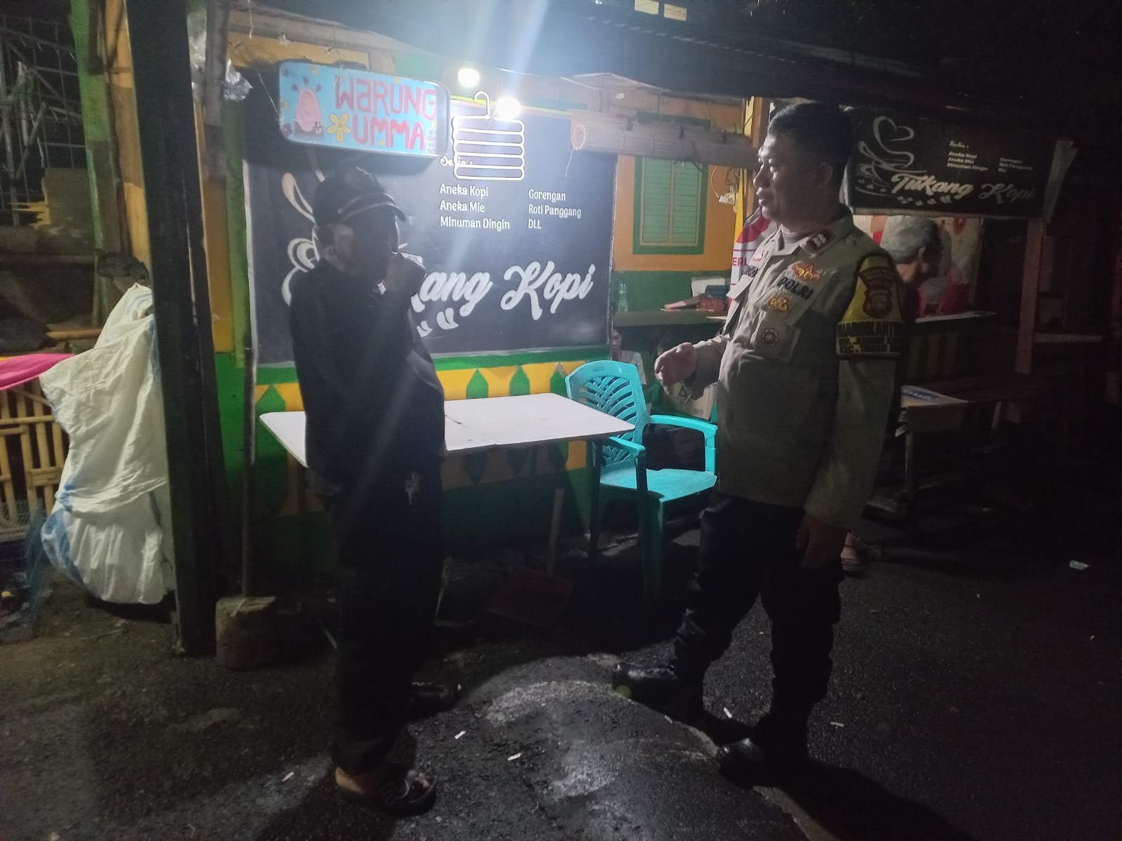 Dalam kegiatan tersebut, Bhabinkamtibmas Kelurahan Kebon Kacang, Aiptu Suhartono, menyambangi Pos Satkamling RW 08 dan bertemu langsung dengan awak siskamling setempat, Bapak Agus. Dalam suasana dialogis dan penuh keakraban, Aiptu Suhartono menyampaikan sejumlah imbauan kamtibmas kepada petugas ronda malam.