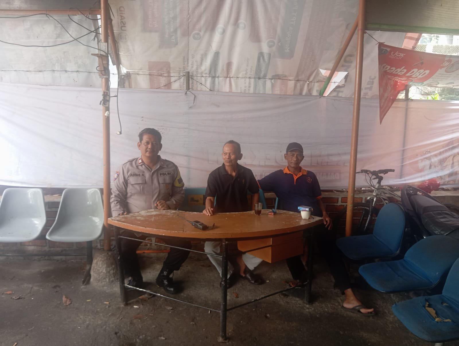 Dalam kunjungannya, Aiptu Aris bertemu dengan staf RW 04, Bapak David, serta petugas keamanan lingkungan, Bapak Anto. Pertemuan berlangsung santai namun penuh makna, diisi dengan dialog seputar kondisi lingkungan dan potensi kerawanan yang perlu diantisipasi bersama.