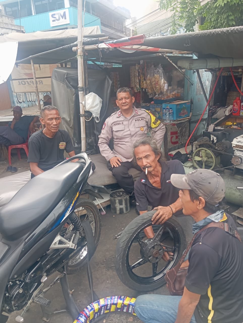 Dalam kegiatan tersebut, Aiptu Aris Sudarsono menyapa langsung warga setempat, salah satunya Bapak Ali yang berprofesi sebagai tukang tambal ban. Sambang ini menjadi sarana komunikasi dua arah antara kepolisian dan masyarakat guna membangun kedekatan sekaligus memperkuat sinergi dalam menjaga keamanan lingkungan.
