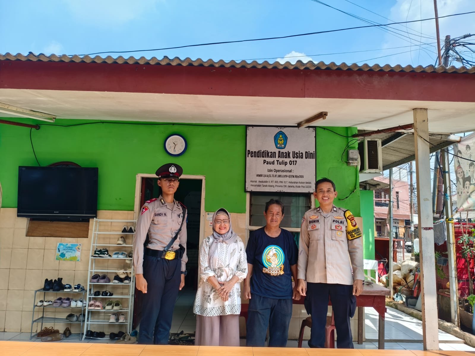 Jakarta Pusat — Bhabinkamtibmas Kelurahan Kebon Melati, Aiptu Deny S., bersama siswa Latihan Kerja (Latja) atas nama Sandy Nugraha melaksanakan kegiatan sambang dan patroli wilayah di Pos RW 017, Jalan Awaludin IV RT 003/RW 017, Kelurahan Kebon Melati, Kecamatan Tanah Abang, pada Senin (27/04/2026), pagi hari.